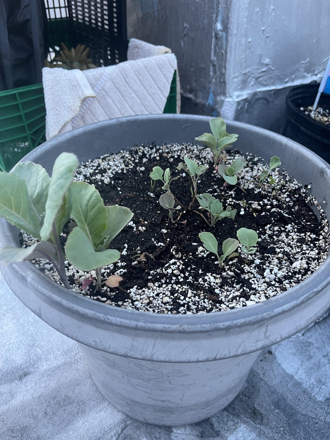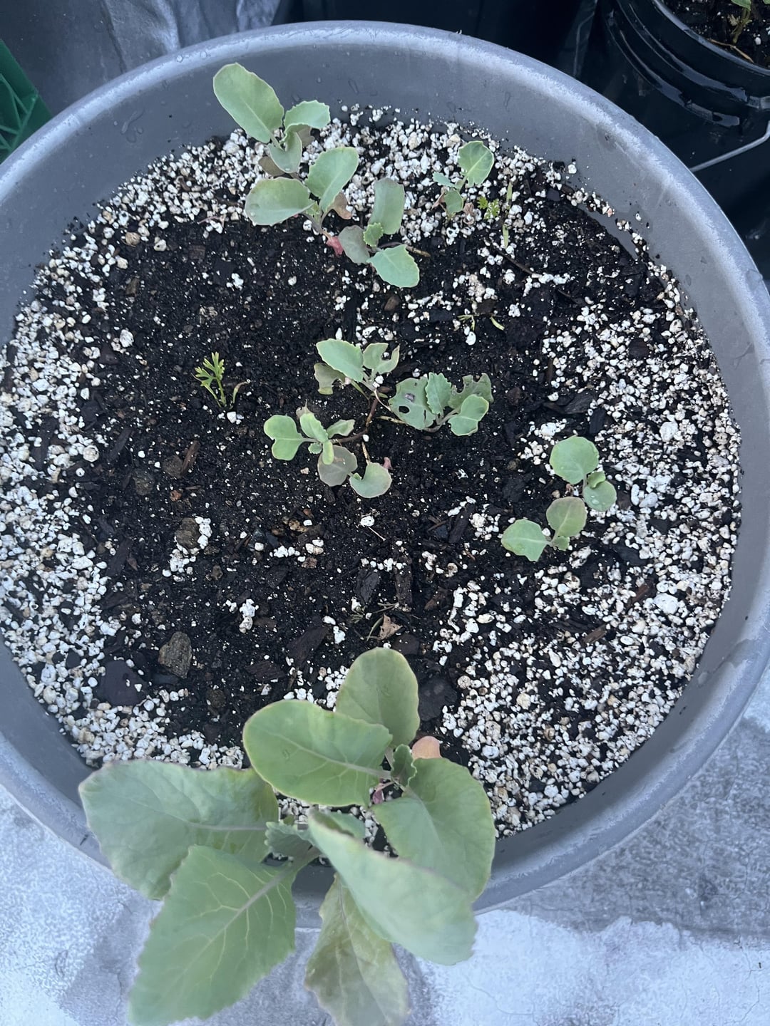 What are these? Planted them and don’t remember! It’s three different seeds, unless secret volunteer weeds got in there! by sooblimes container gardening 6 Comments Nadiam57 3 months ago Hmmm, didyou plant cabbage? AriaSable 3 months ago Looks like some variety of brassica and maybe a wee carrot Farmer-Mary-Ferments 3 months ago Red cabbage – mine are ready ylti harvest now – yours need a couple months Outrageous_Appeal292 3 months ago Joining the brassica team but was thinking broccoli? Definitely could be wrong. Artistic_Skills 3 months ago On the left: looks like a kale plant i have Psychological_Sir256 3 months ago Cauliflower or brussels sprouts?