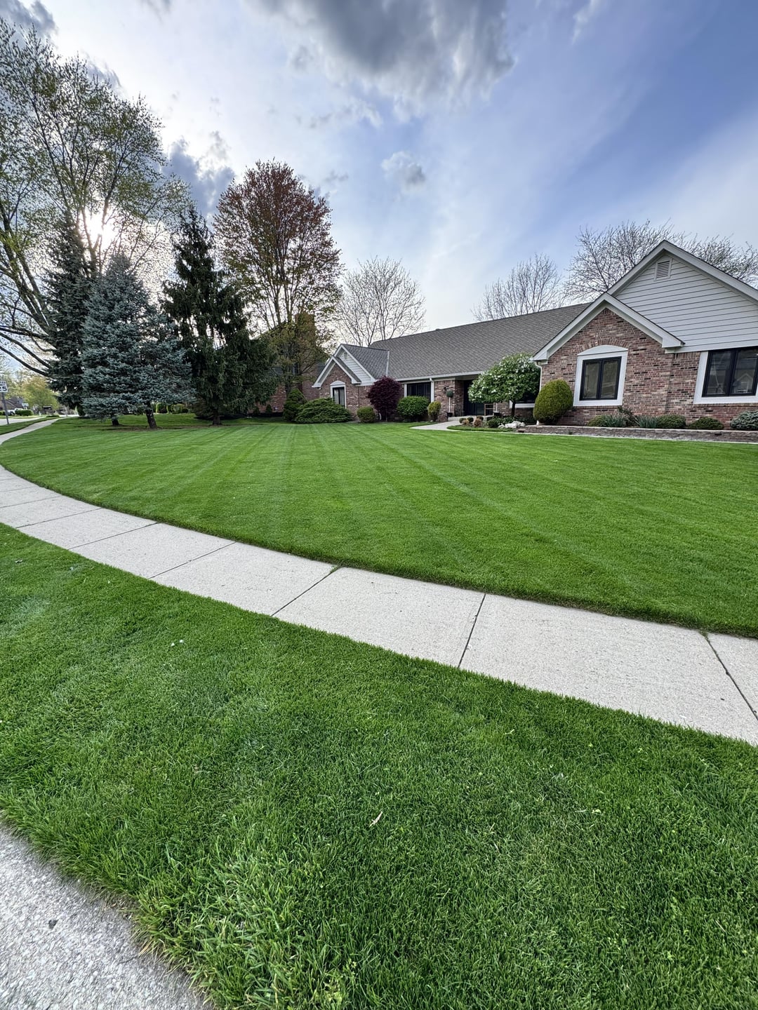 Moved into this house 2 years ago in September, last fall I over seeded, and heavily aerated with Lesco Tuff Turf, filled low spots with topsoil and re seeded areas that appeared to have grub or fungus damage. I have applied roughly 3.5 pounds of nitrogen per 1000 square feet this year and water twice a week. It looks good, but it’s not where I want it. One thing I have noticed is I have what appears to be lots of thatch. Should I cut it very short this fall, dethatch it, aerate again and reseed? Or aerate and nitrogen blitz? Just looking for pointers, I am in central Indiana and I know my dirt isn’t the best just based on how terribly it drains. The greener picture is from April and the other one was Sunday.