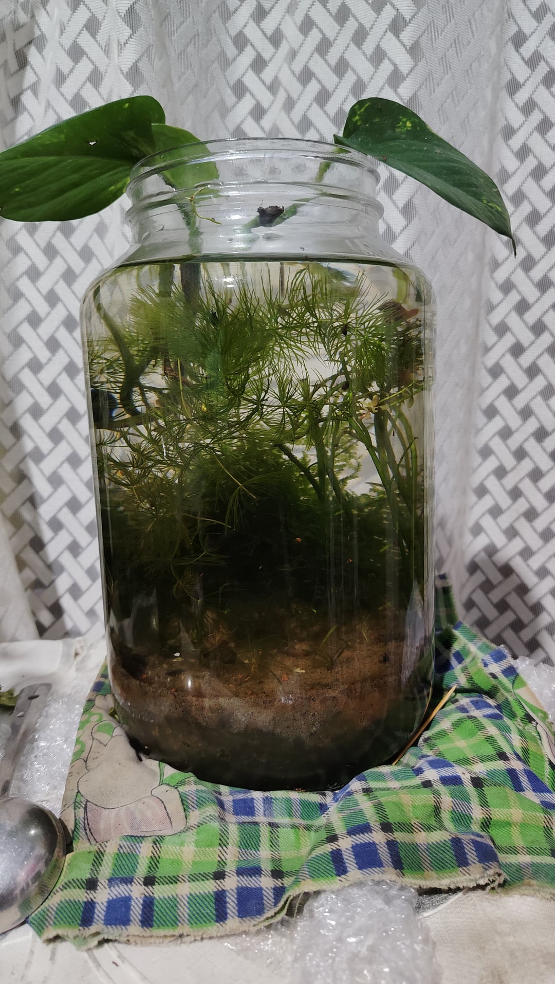 There are lots of snails(bladder snails, a trapdoor snail, a trumpet snail and two types of ramshorn snails), 3 shrimps, copepods, a wriggling worm that pops up if i disturb the substrate, and ostrachods đ