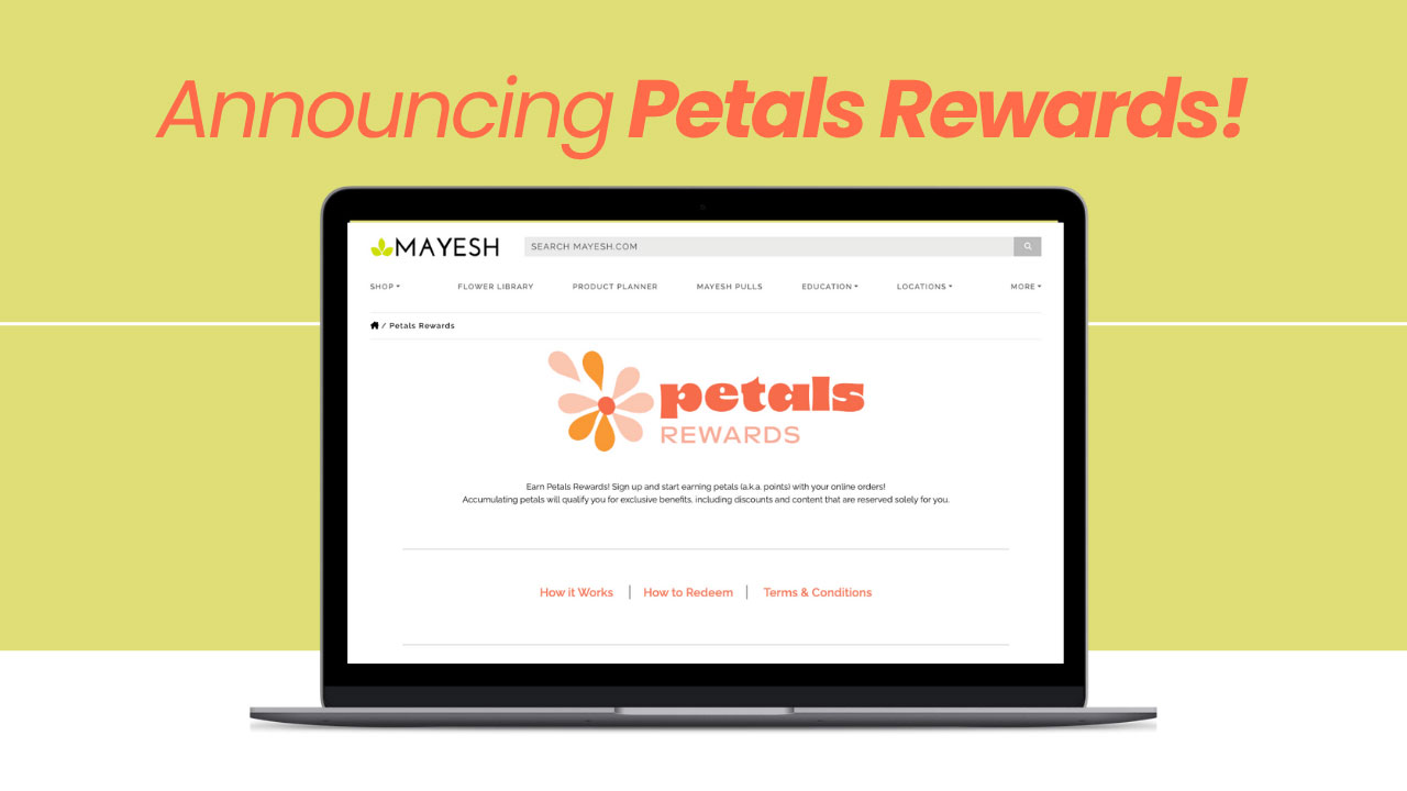 We’re thrilled to introduce something special just for you – our amazing customers! Say hello to Petals Rewards, Mayesh Wholesale Florist’s brand-new program that lets you earn rewards just by shopping for your wholesale flowers online. Whether you’re planning your weekly orders or prepping for a big event, now you’ll be rewarded with every qualifying purchase you make on mayesh.com!