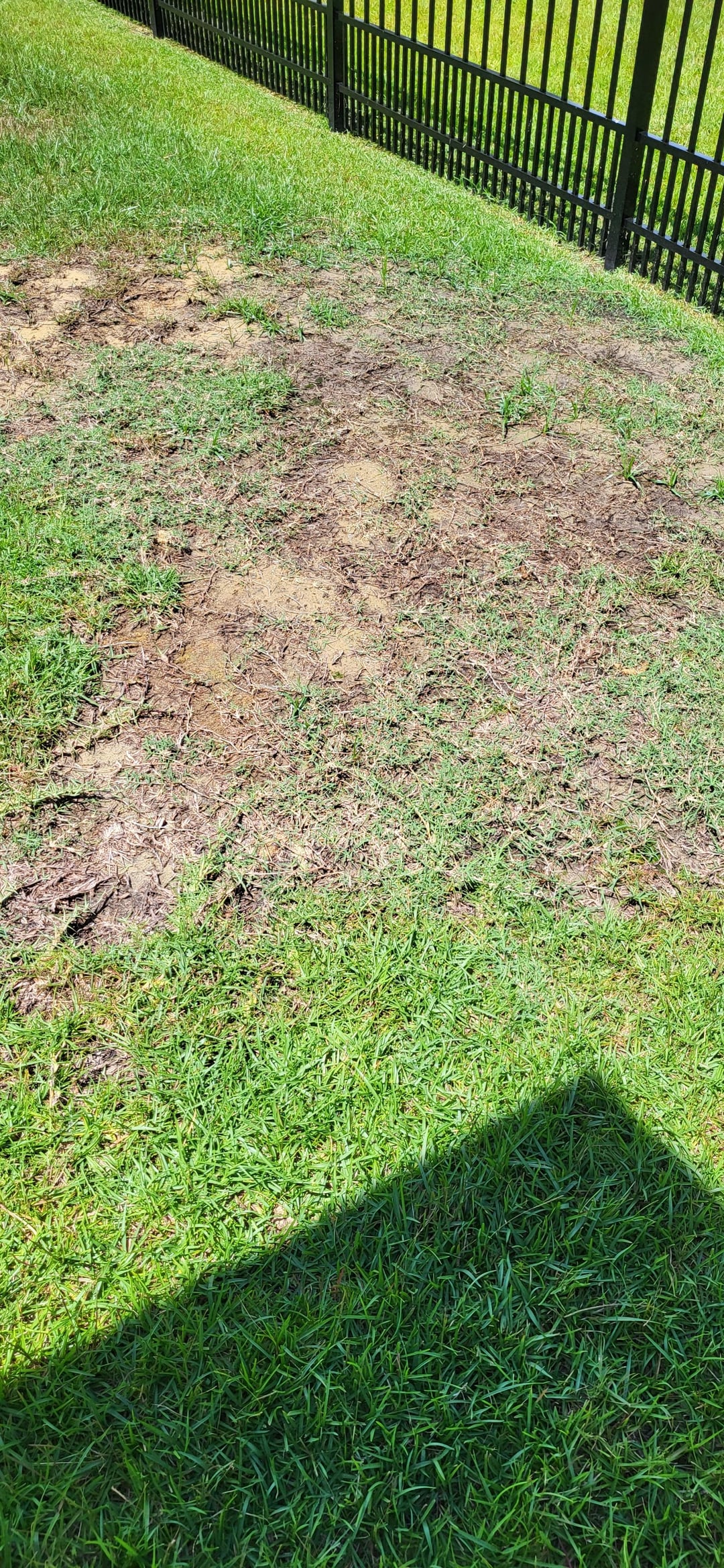Bermuda crawlers. That soil looks a bit compacted in the dead spots. If you don’t want the Bermuda to take over, I would suggest pulling up what you can and then core aerating the dead spots and overseeding with your grass of choice in the fall. I’m in zone 8a and I aerate/overseed in late September.