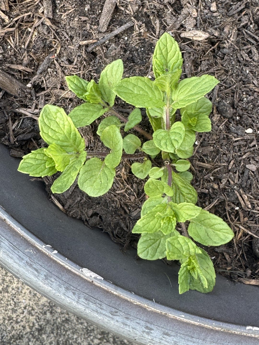 They initially didn’t seem too healthy, with brown spots (I worried it was mint rust) and leggy stems, so I cut them all right back after a few days of letting them settle. In response, they all sent out several new, healthy branches from the base.