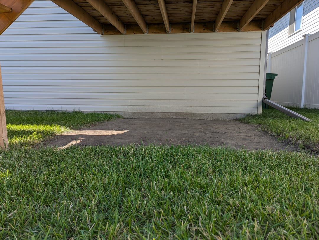 Appreciate some advice about what to put under my deck here. I really have no experience with landscaping aside from mowing my lawn – poorly. The grade is not very good here and does slope towards my house, but this area does not get a lot of water at all.