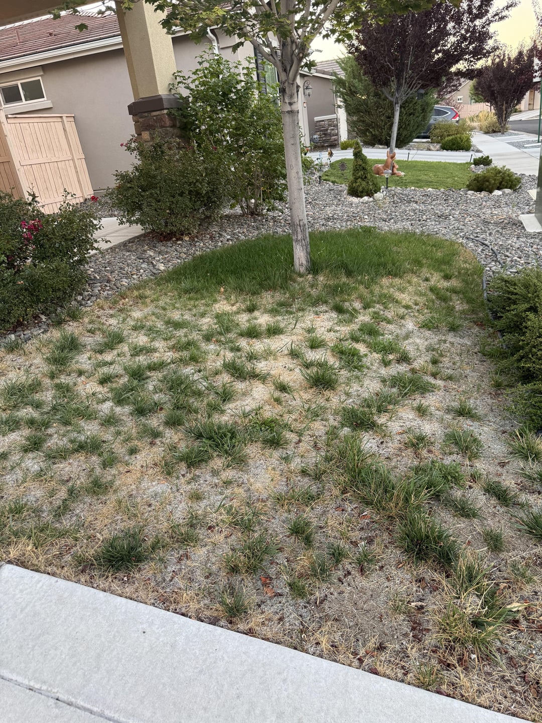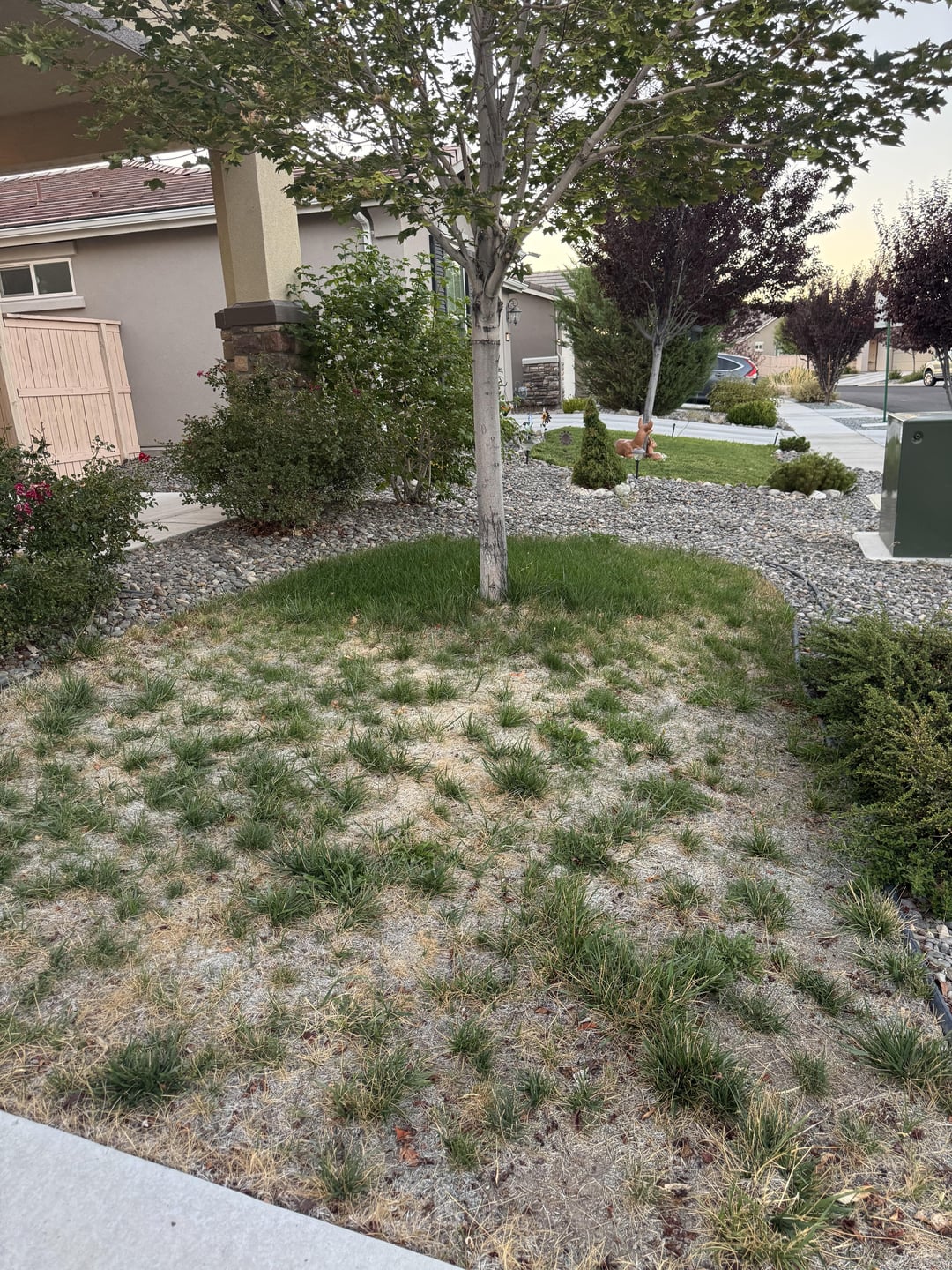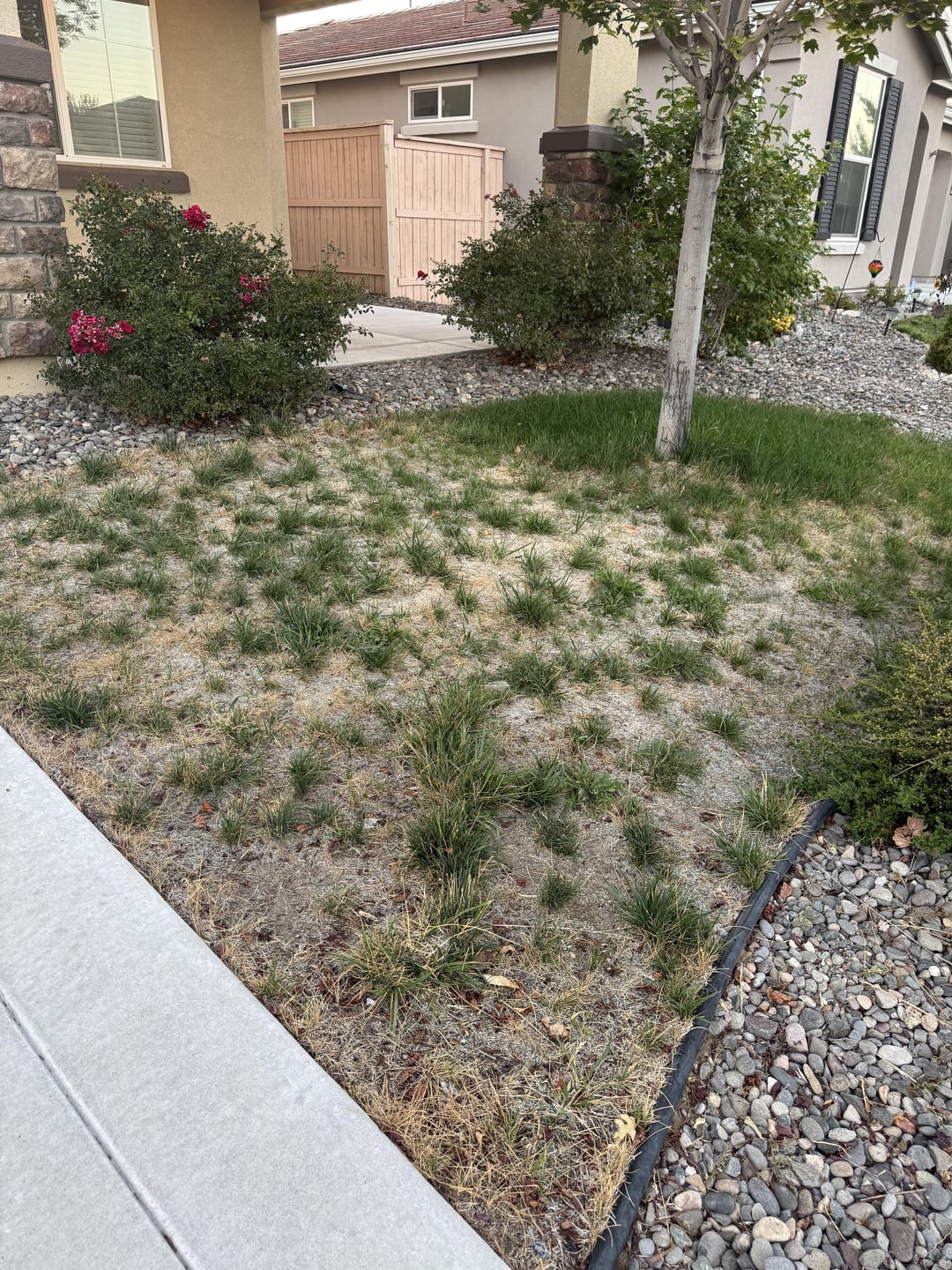 I lived in south Reno for 3 years. It has a very specific look. My MIL told me this week that her grass has gone dormant in the heat. You will have to wait until September or October to reseed.