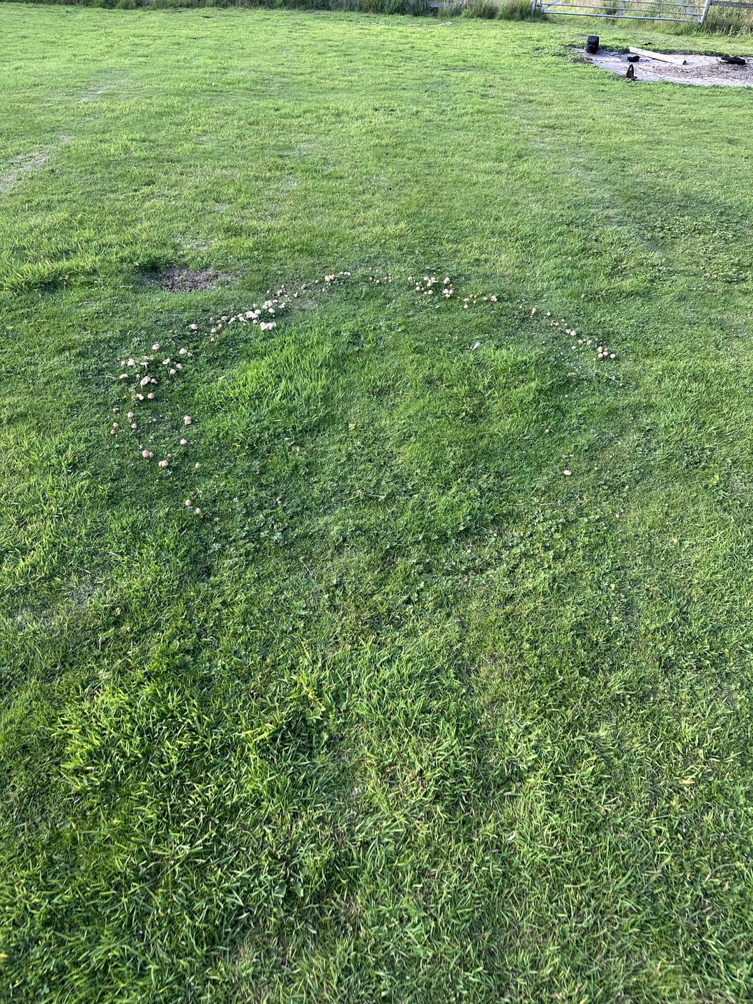 [“Fairy rings are caused by an individual fungus growing underground. The fungus sprouts lots of small threads, called mycelium, in a circular shape. A year later, the mushrooms pop up out of the ground at the edge of the circle, creating the fairy ring. The circle will start off small in size, getting bigger as it gets older.”](https://www.woodlandtrust.org.uk/blog/2019/08/what-is-a-fairy-ring/#:~:text=What%20causes%20fairy%20rings%3F,circle%2C%20creating%20the%20fairy%20ring)