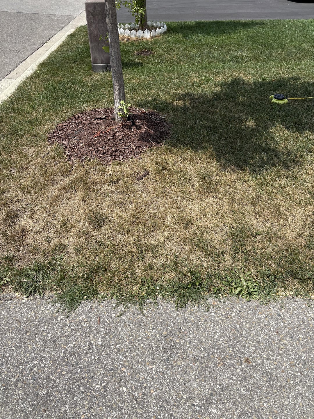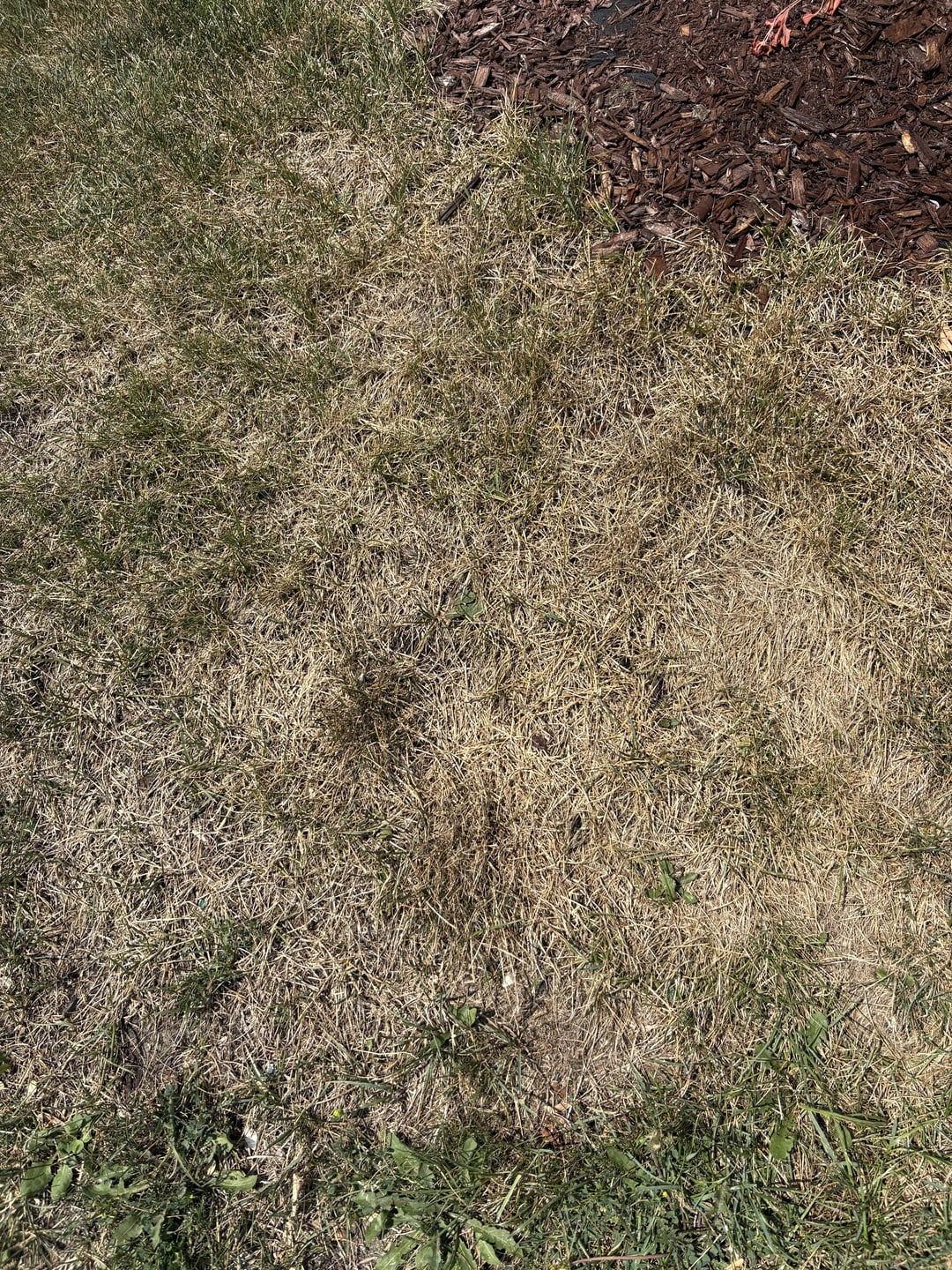 Help is urgently needed, as you might assume from the title – I suspect the soil is over salted, the burned grass follows where I piled the snow (and all the salt I put down for the ice last winter). I even had to pull a shrub out because it died…? I was where the weed fabric is sticking out of the mulch.