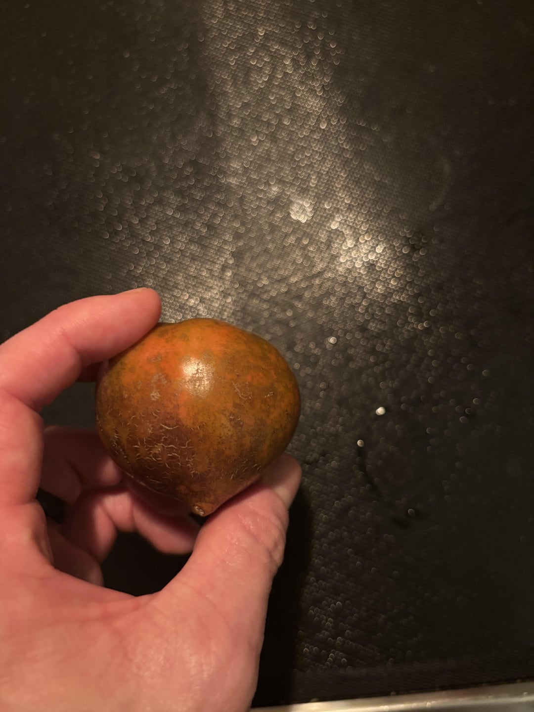 It almost looks like it’s self germinating, I’ve had a tomato do this after sitting for a long time. Had those little white tendrils under the skin that were the sprouts, eventually looked like a monster after they popped out of the skin. Like in [this](https://www.reddit.com/r/oddlyterrifying/s/QGuDp9Mx7A) post. Could be 100% wrong though.