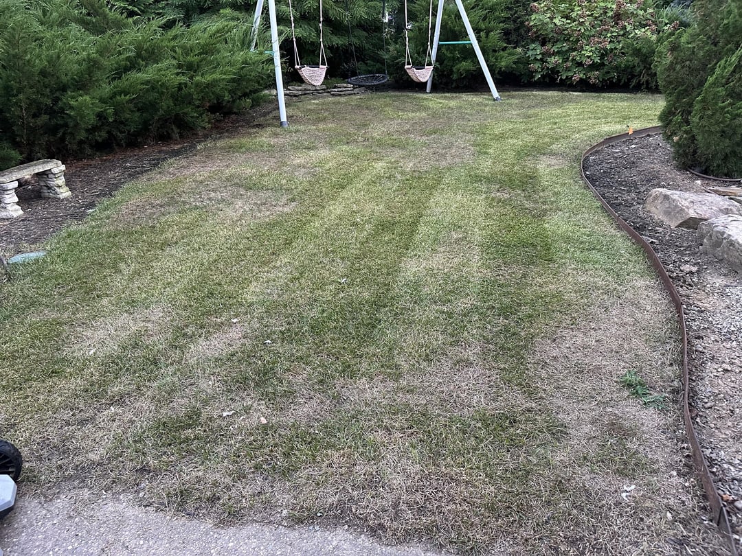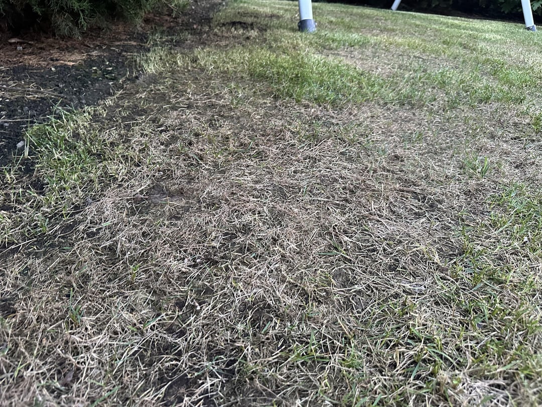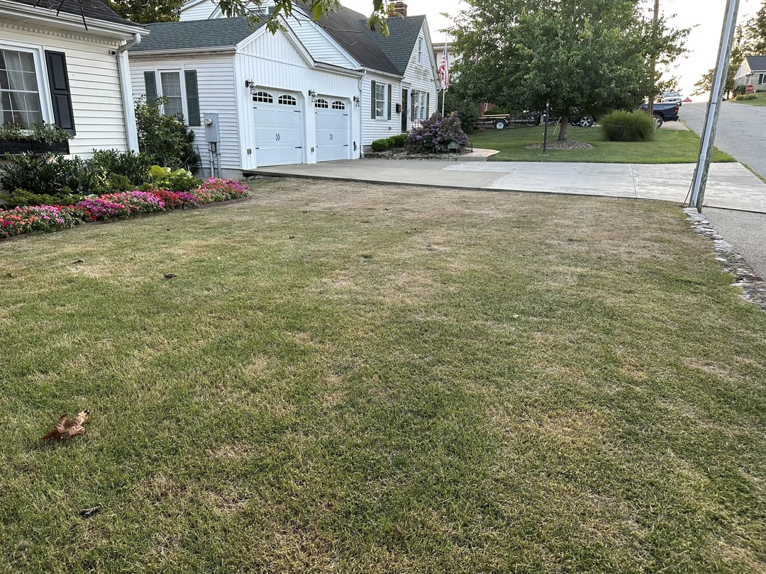 So fast-forward to the end of July, and I had a tremendous amount of weeds due to me not being home for two weeks for vacation, so I sprayed it with a surfactant and ended up burning the whole section in my front yard and have the dead patches of grass in my backyard.