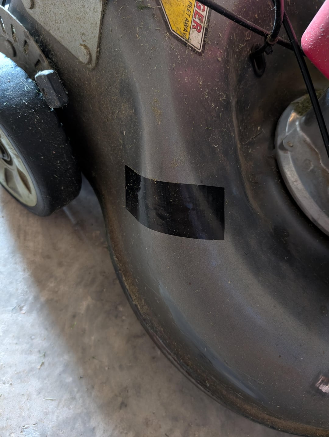 It’s not worth fixing. If your seeing that on outside good chance that underneath the baffles are worn out or getting thin. Unless you are handy with tools and motor is good . U probably could ask your local lawnmower sales guy for a mower that owner junked. Might get lucky and find good deck and premature blown motor .