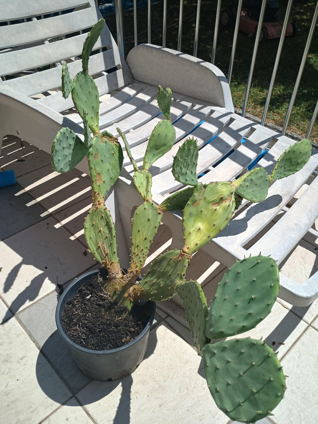 I think this is a humifusa. Bought this guy for 5 euros online and had to save him. He never bloomed or fruited. Pictures 2 and 3 show updates. It was under a lot of stress and probably would have snapped by UpstairsProduct3280 cacticactuscactuses 2 Comments BiggyShake 2 months ago Ok, but what did you do? Level-Ear-8290 2 months ago Looks great now! Prickly pears can be tough but rewarding. Keep it up!