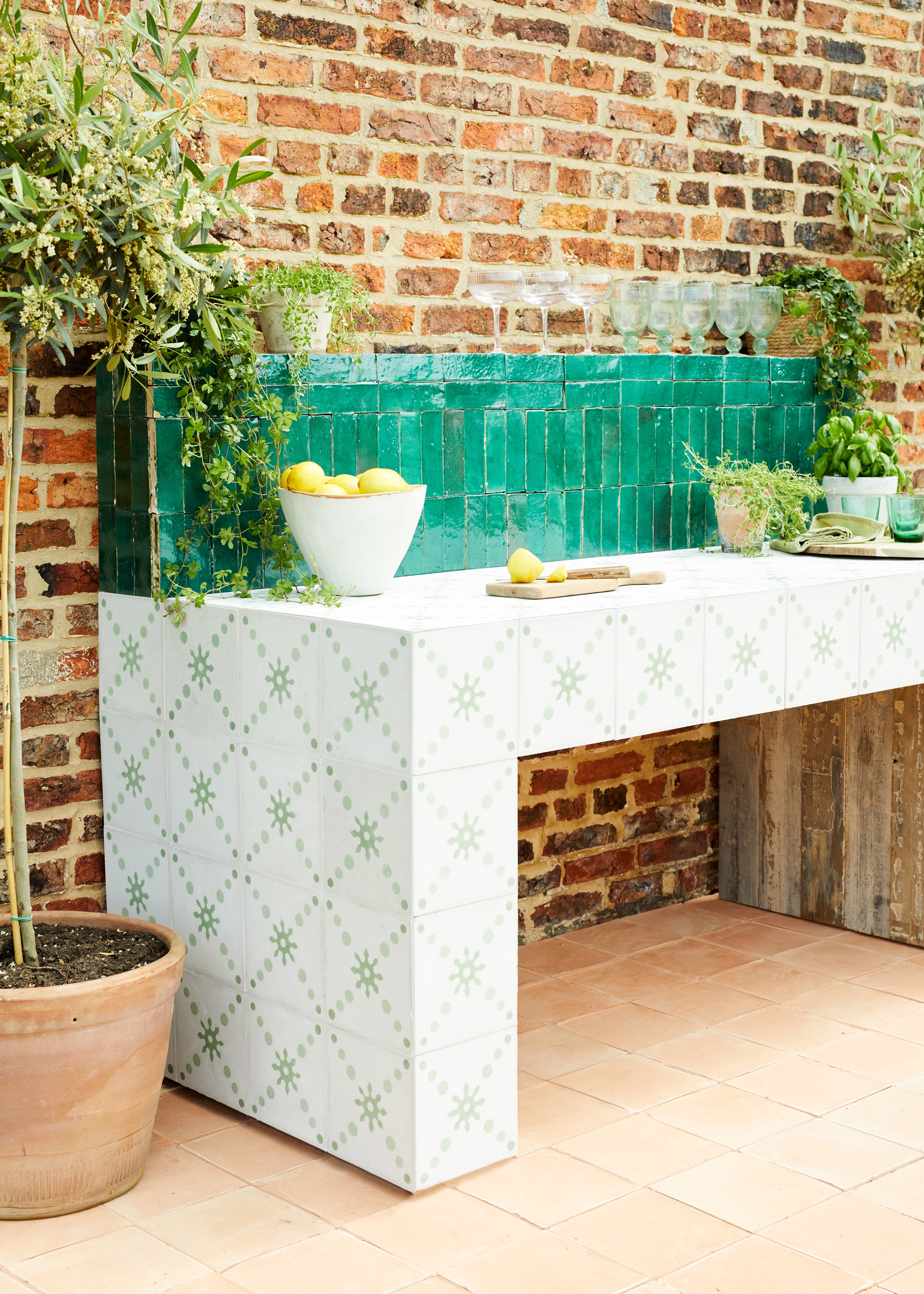 “Tiles are a simple yet striking way to define a space outdoors,” comments Lee Thornley, Founder of Bert & May. “Statement tile partitions, such as a raised tile bed for an outdoor shower or a splashback behind a freestanding preparation counter, take away the need for unnecessary structural changes.”
