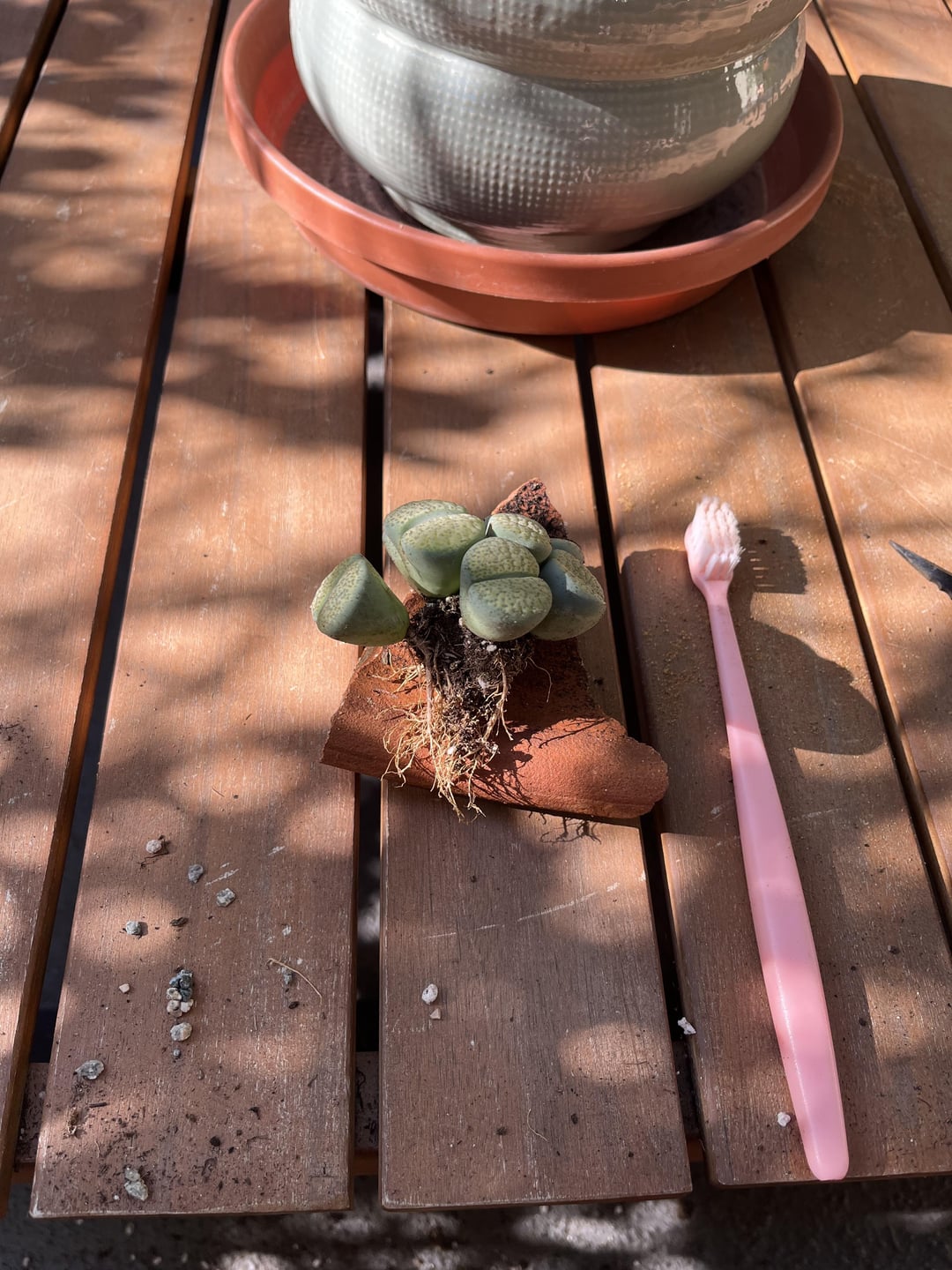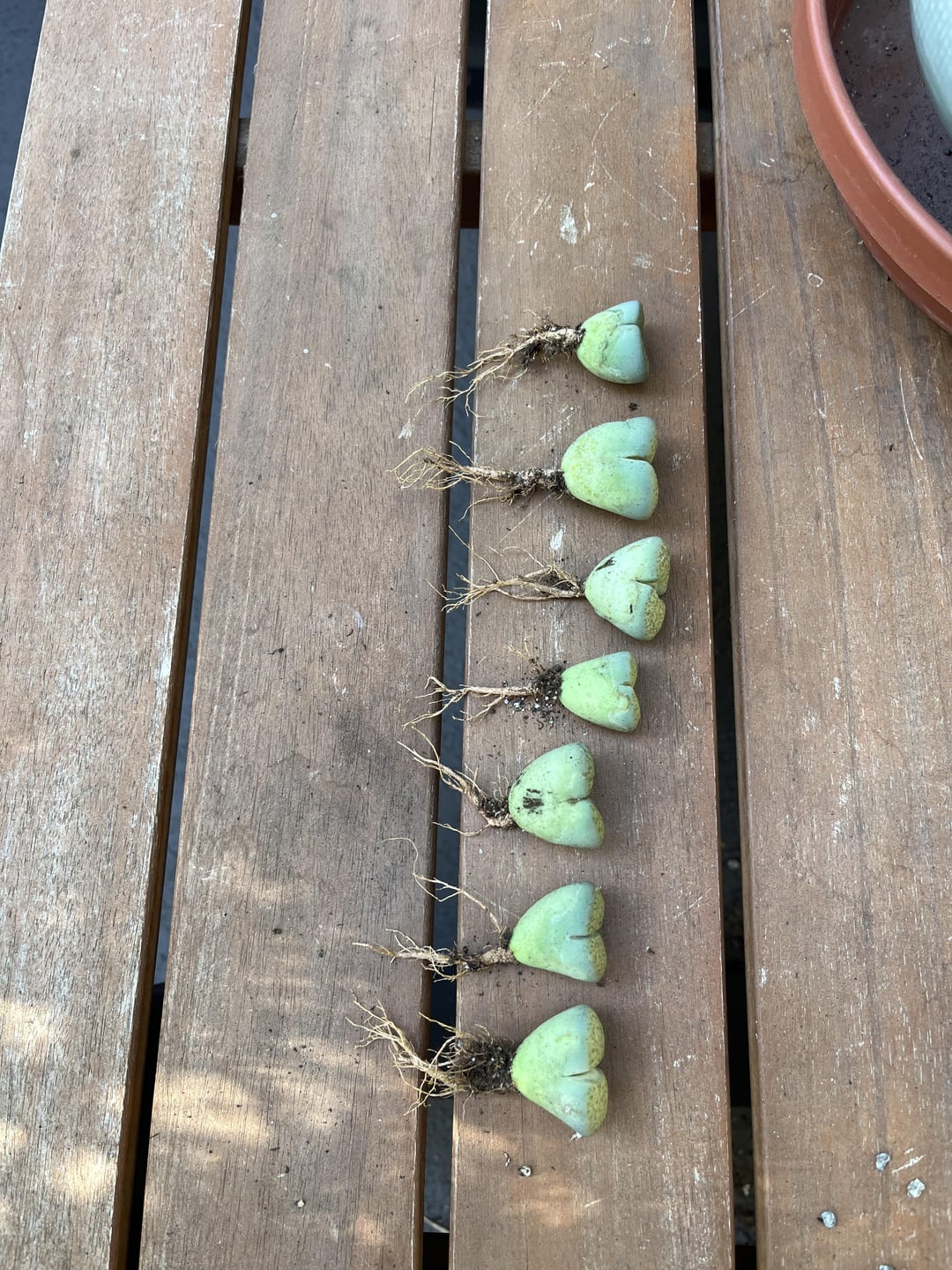 Super proud of the work I put in this weekend on some Trader Joe’s Lithops. My first shot at this, and excited to see how they go! To anyone trying to remove the soil from some roots, try an old tooth brush. I was able to remove 90% of the organic matter without damaging the plants or roots.