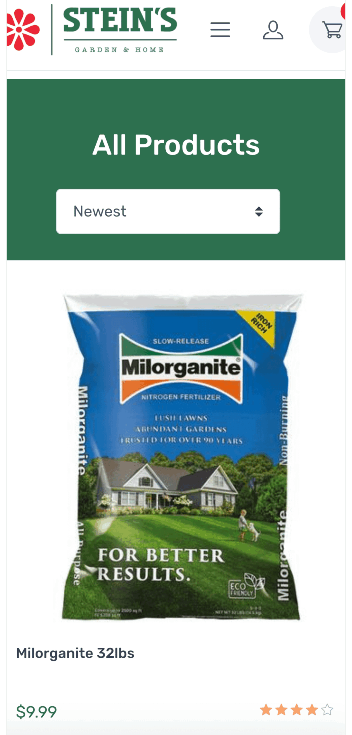 Usual Steins sale is in effect: Milorganite $9.99 a bag. I'll also mention their own top soil is high grade; filtered, no rocks wood or mulch, about $2.50 a bag, 3/4 cu ft I believe.