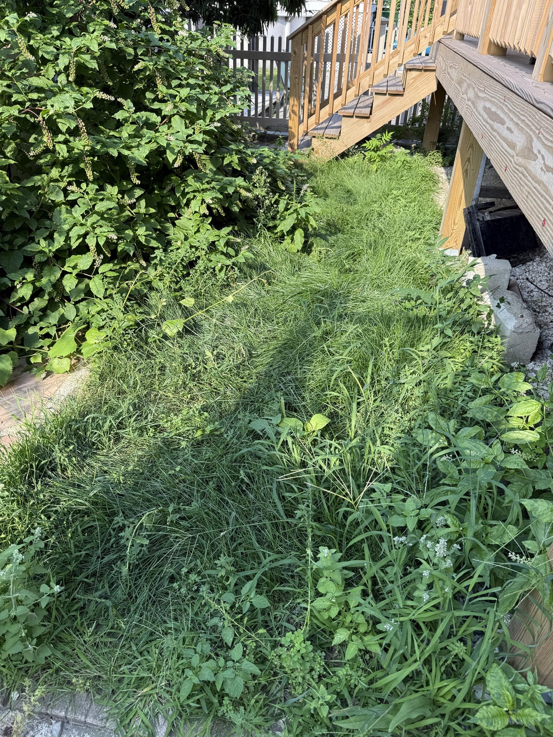 We’re fortunate to have a small city backyard but it’s super overgrown with pokeweed and other miscellaneous unknown things. How can we clean it up and make it look nicer? And what plants might be good for along the fence? We like the grassy patch for our dog. There’s a brick path and about a foot of soil along the fence. Thank you!!!