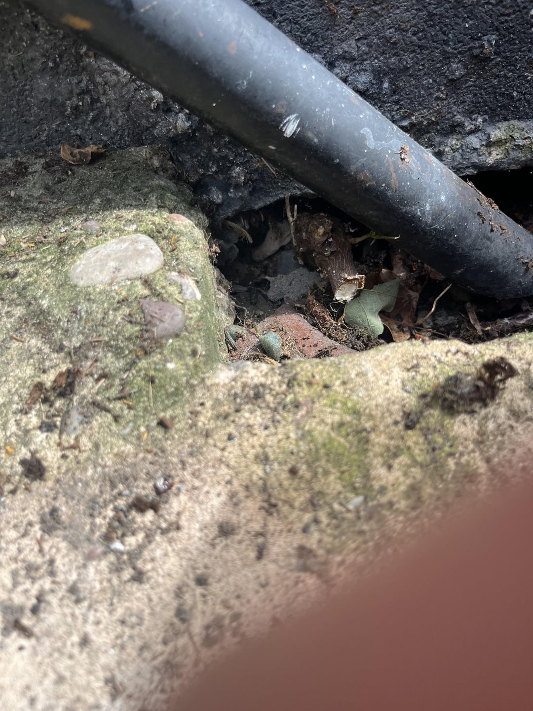 We’ve had a plant growing out of what I thought was the drain for a while (a few years). I’ve been cutting it back when it gets too big but done nothing more than that. I don’t look after my garden very much, I don’t enjoy it unfortunately and I think my laziness has probably come back to bite me as I’ve been reliably informed that this is a sycamore tree. Also it’s not growing out of the drain, it’s growing out of our house.