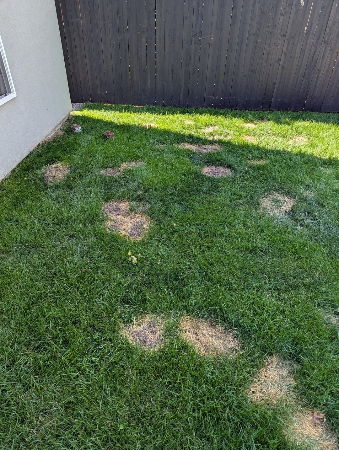 3. Female dogs can make spots like this, but generally the grass around the kill is super green and I’m not seeing that. Also, the areas that have been affected longest have total loss. That tells me that it’s not (all) dog piss.