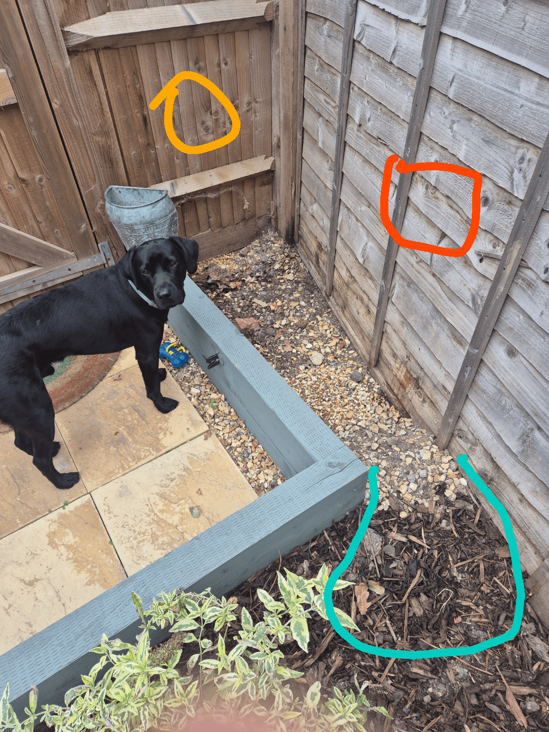 How can I get a pond in this space. I can't touch red fence and obviously cannot submerge it in water. What could I use to build a wall to protect the fences. Would like something easy as I dont fancy laying a brick wall. Not fussed on its final look as it'll be covered with plants. Anybody got any advice or previous experience?