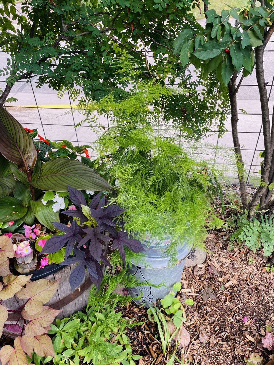 I container garden due to have psoriatic arthritis. I figured out around 9 years ago it’s just easier for me. Some of my plants are a little behind this year due to us having a cold wet June in northern Wisconsin. Our growing season is already so short. I always get asked if I bring them all in for winter. I wish! My house is very small at 560 sq ft. I bring in all the elephant ears and tropicals. The Oxalis(they usually go dormant a couple months) my “wandering dude” my pink lady, spider plants, Thanksgiving cactus, parlor palm, asparagus fern, Ivy’s all come inside. It’s a tight squeeze 😆