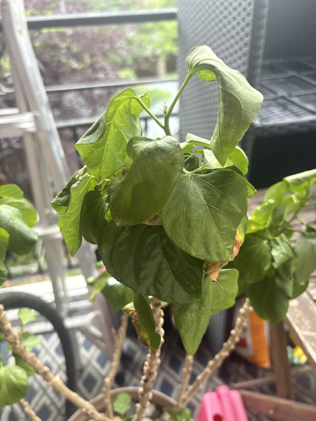 Earlier this summer, I repotted my hibiscus plant. Since then, it hasn’t produced any flowers, the leaves have become soft, and the soil stays wet for a long time even without watering. I tried giving it more sunlight by bringing it outside, but there has been no improvement. (See pictures before and after repotting.)