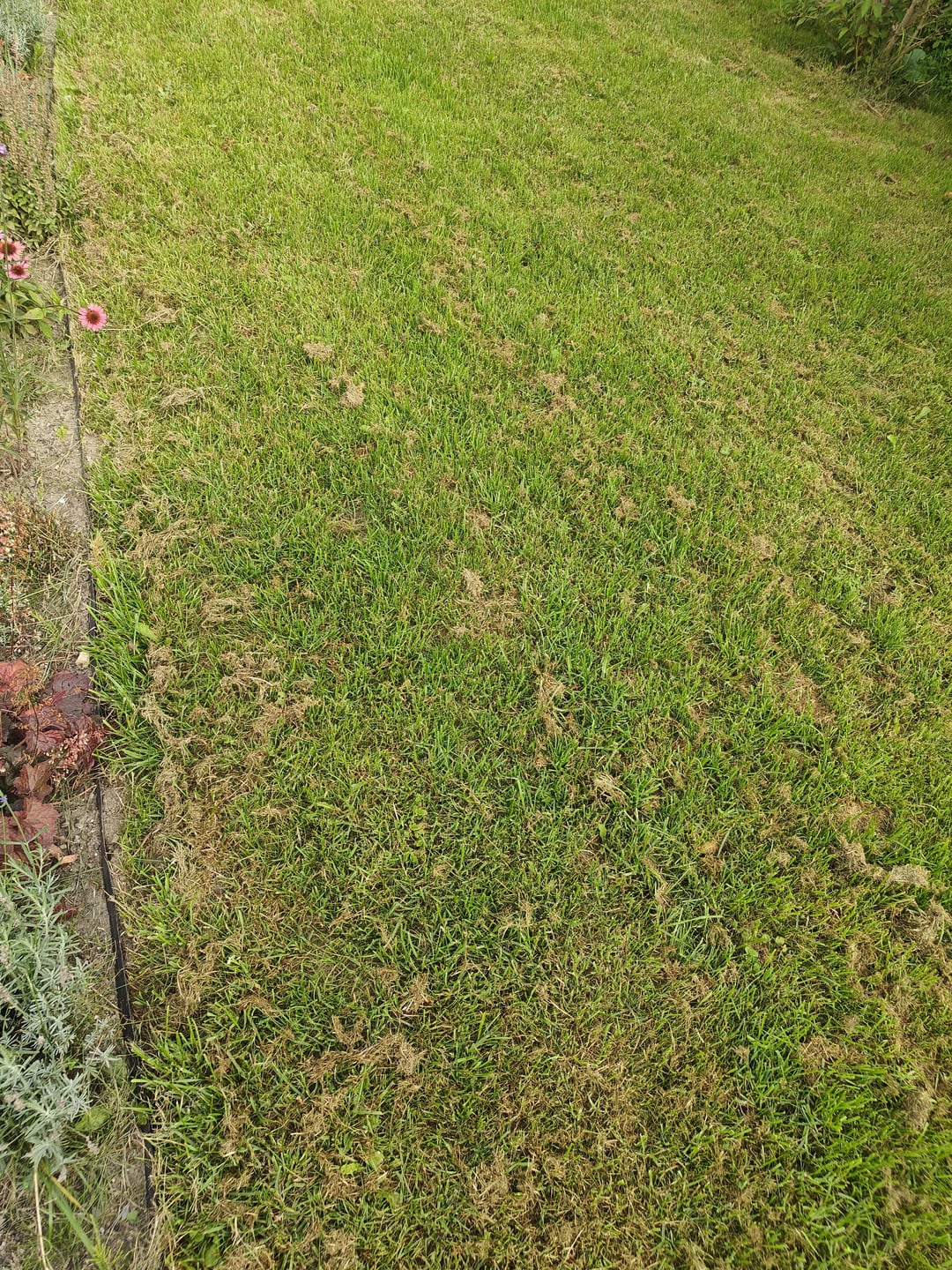 I fertilized 3 weeks ago and both have gotten the same treatment all year. They were allowed to grow a bit long for the roots to develop and because of a lot of rain for a week. I then cut it down over 3 days reducing the height, same procedure for both lawns, still one struggles and the other one thrives.