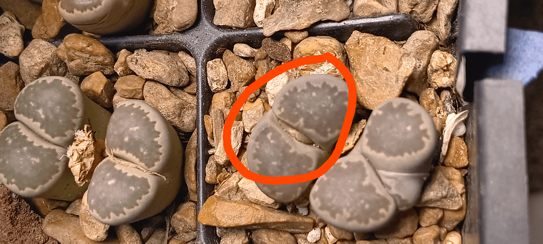 I got these abt 4 months ago and I know one is really needing water and 2 are close to needing water but how much do I water im scared to under water or over water… soil mix is 100% inorganic also wondering if the one with a red circle is starting to flower or starting to split TYIA