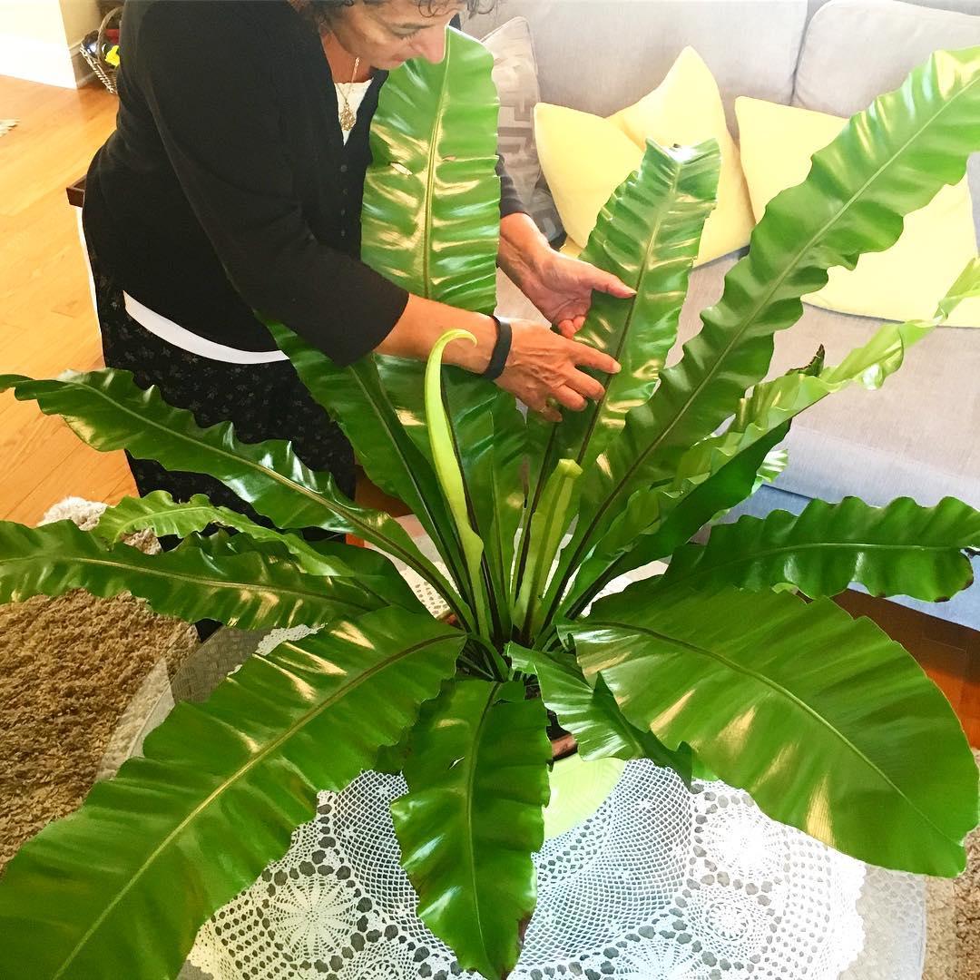 When your houseplant outgrows your house 🏚🌿🙀We haven’t seen a bird’s nest fern this large since our visit to Singapore (where they grow on trees). We gifted this plant in December at just over a one foot wingspan and now it’s almost five! She uses a double planter, always keeps the soil moist, keeps in a bright location and gives that special care ✨ that only a mom can give😘 #birdsnestfern #aspleniumnidus #houseplant #thehorticult