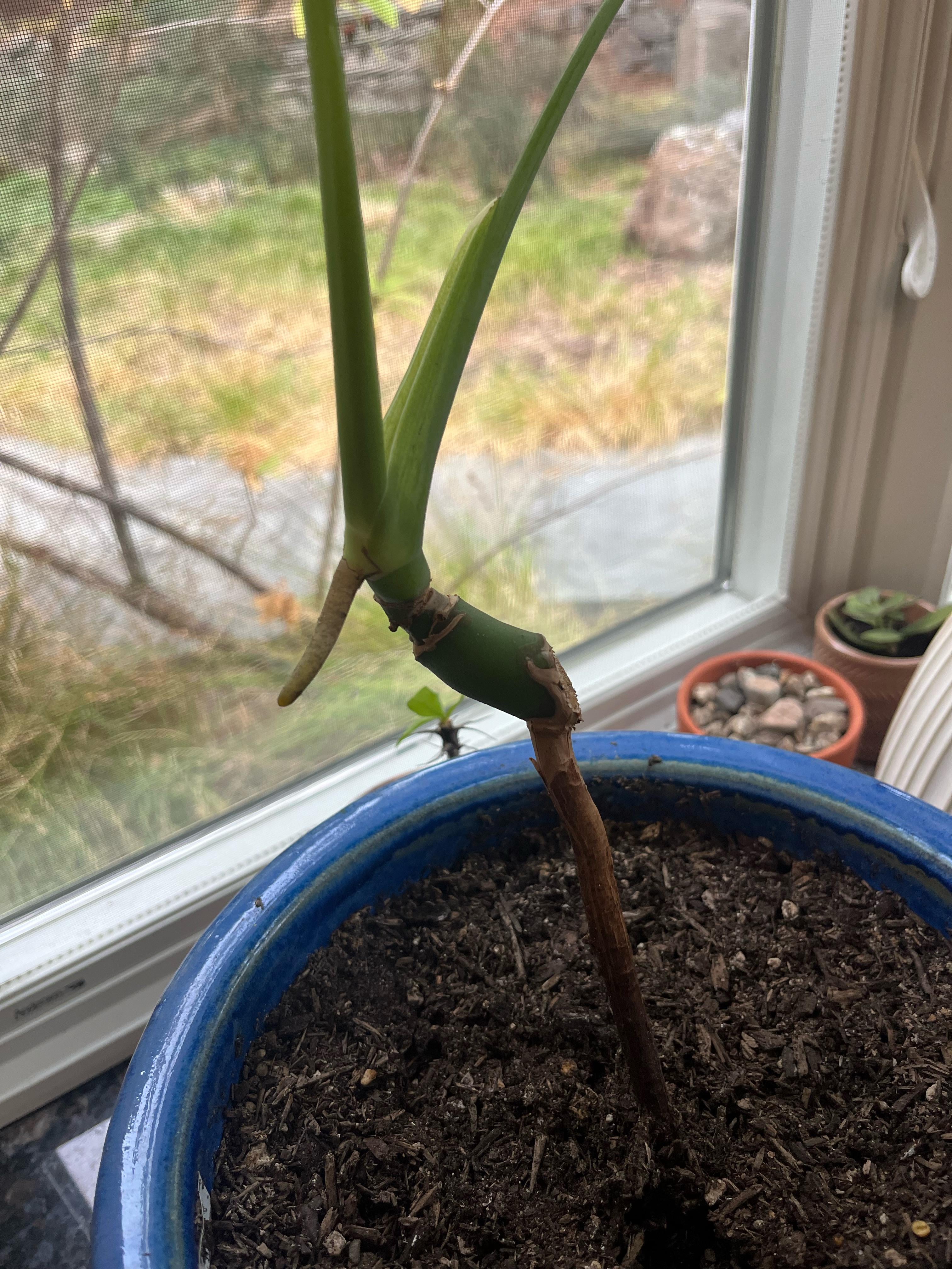That stem is probably a foot long and makes re potting hard. Km constantly having to pot it in pots too large because of it. I got the propagation from a friend with it.