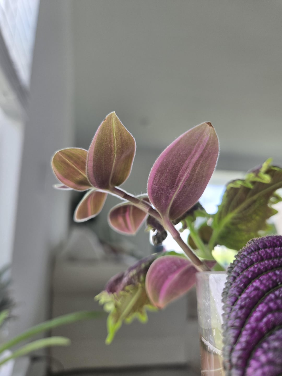 I found this at Lowe's. It was next to a hanging basket of the same thing but the basket did not have a tag on it. My guess is tradescantia, but I'm not 100% positive because I've never had a tradescantia before, and if it is, I'm not sure what specific kind. The leaves are soft and fuzzy and it started growing roots within a few days. Anyone know?