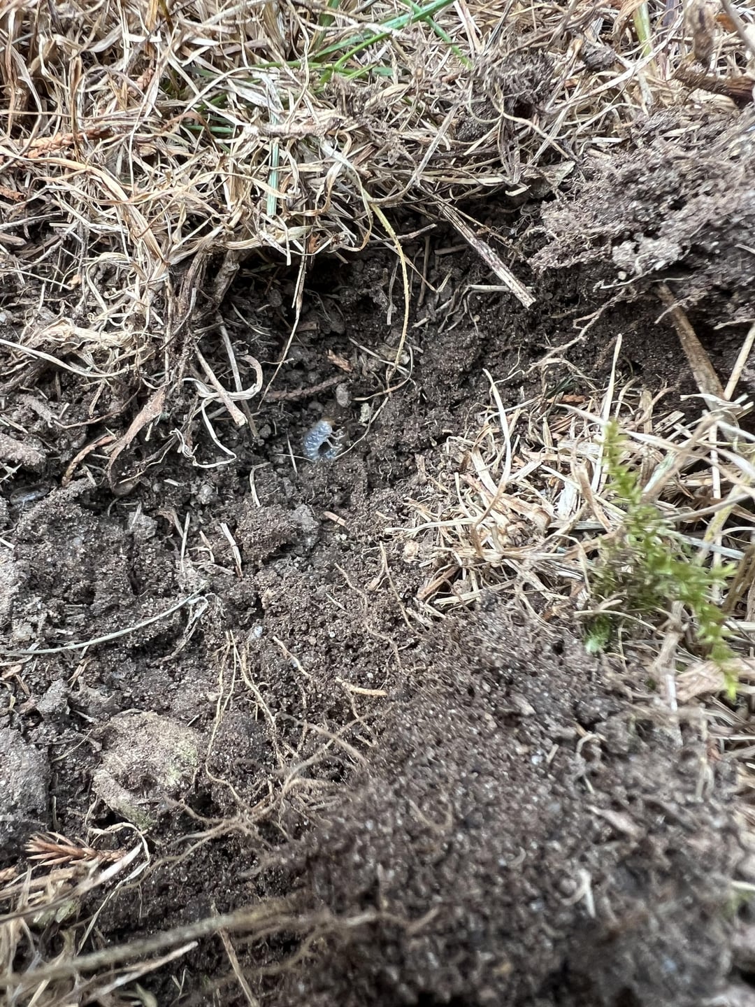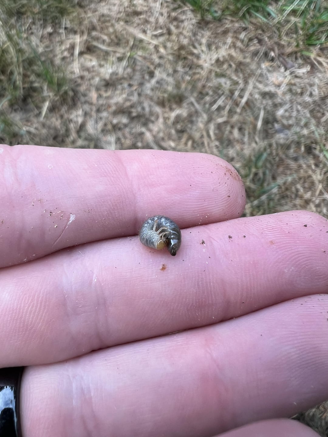 My sceptic got inspected and pumped before I moved in, and this patch is looking especially bad. Pulled back some grass, sure enough the roots came right out, and here’s this little guy.