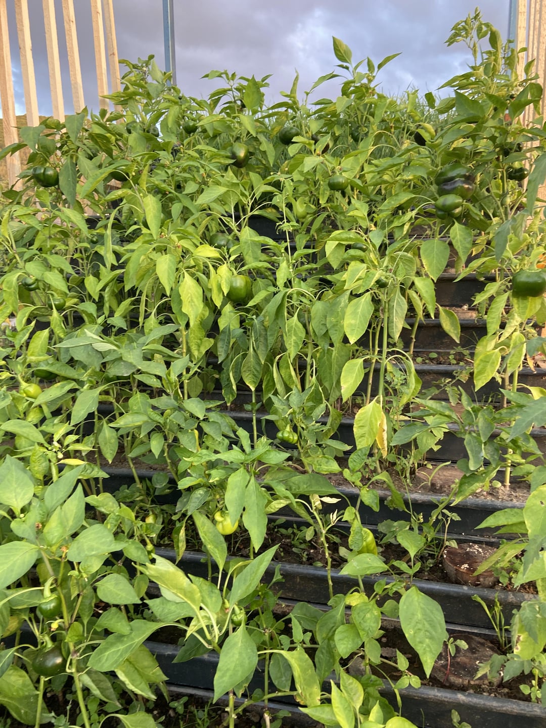 At the moment, I have grown tomatoes and peppers, which have borne fruit. I have also sown lettuce and spinach, but they have come out very poorly (I only sowed them in July) and the few days ago I threw some wheat grains on them, which have sprouted very well.