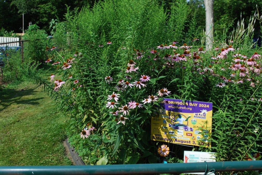 Flowers bloom on a hot summer day inside Little Detroit Community Garden. (Courtesy photo)