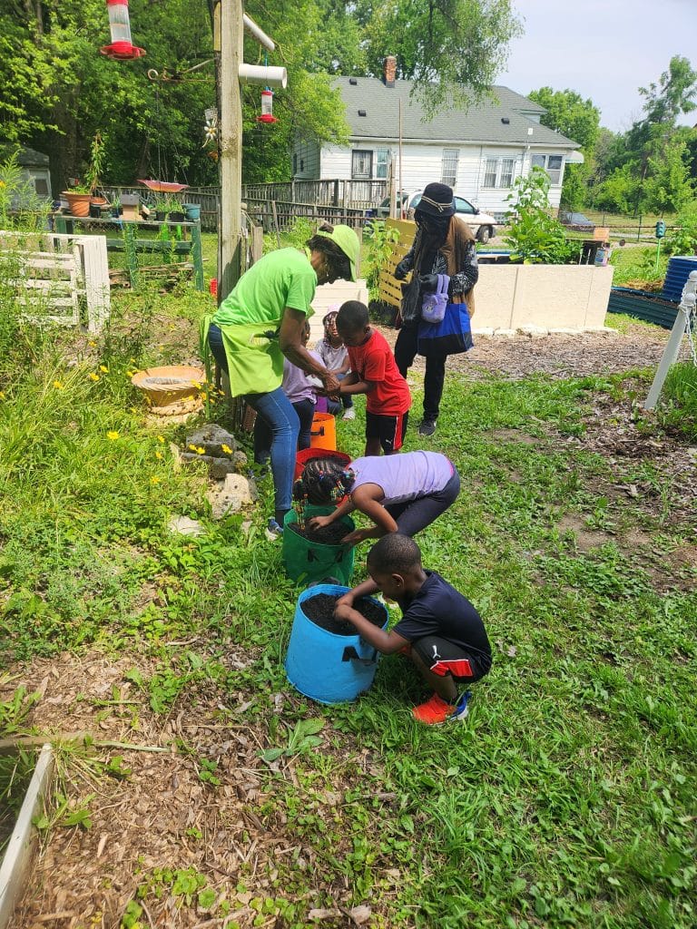 Kids plant seeds during their visit to Little Detroit Community Garden. (Courtesy photo)