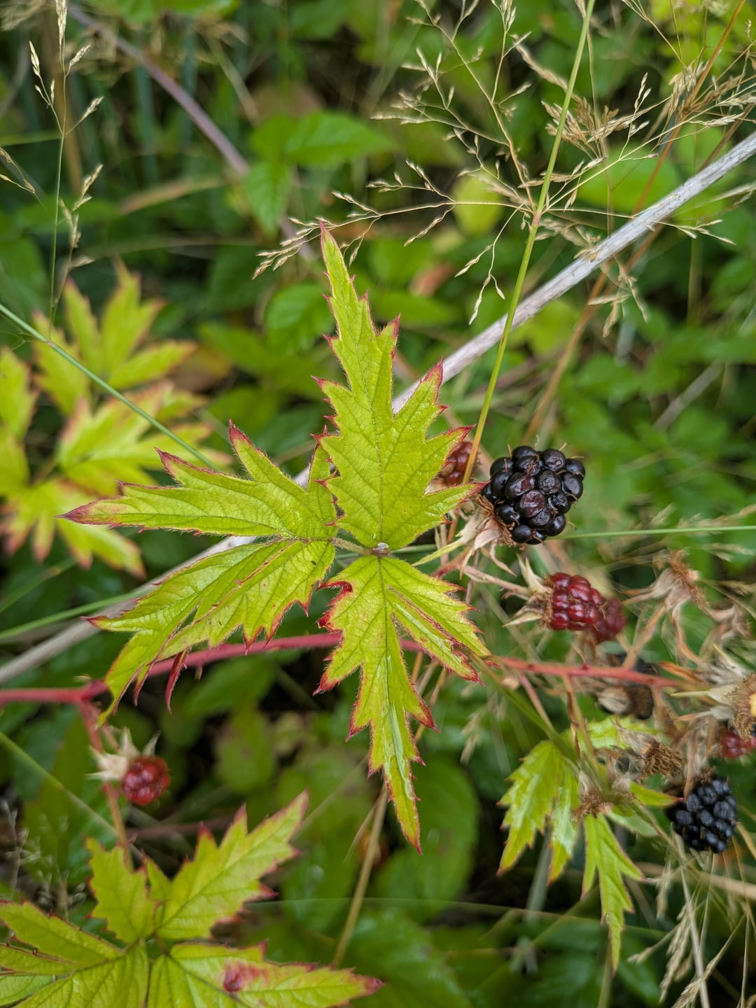 These dark berries came from 5 acres of feral berries that we were told popped up following the St. Helen's eruption and have never been managed beyond browsing by wildlife. Some plants look like blackberries, some look like black raspberry, but I also think I'm seeing a wide bit of variety within each of those, and possibly some hybrids…? Maybe some marionberry?