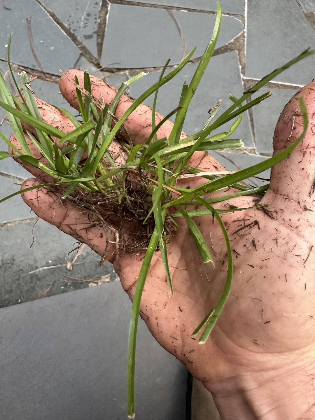It seems there is a plant with a long, almost garlic/lily type leaf growing through your lawn. Have you ever seen any sort of flowers or seed develop on it?