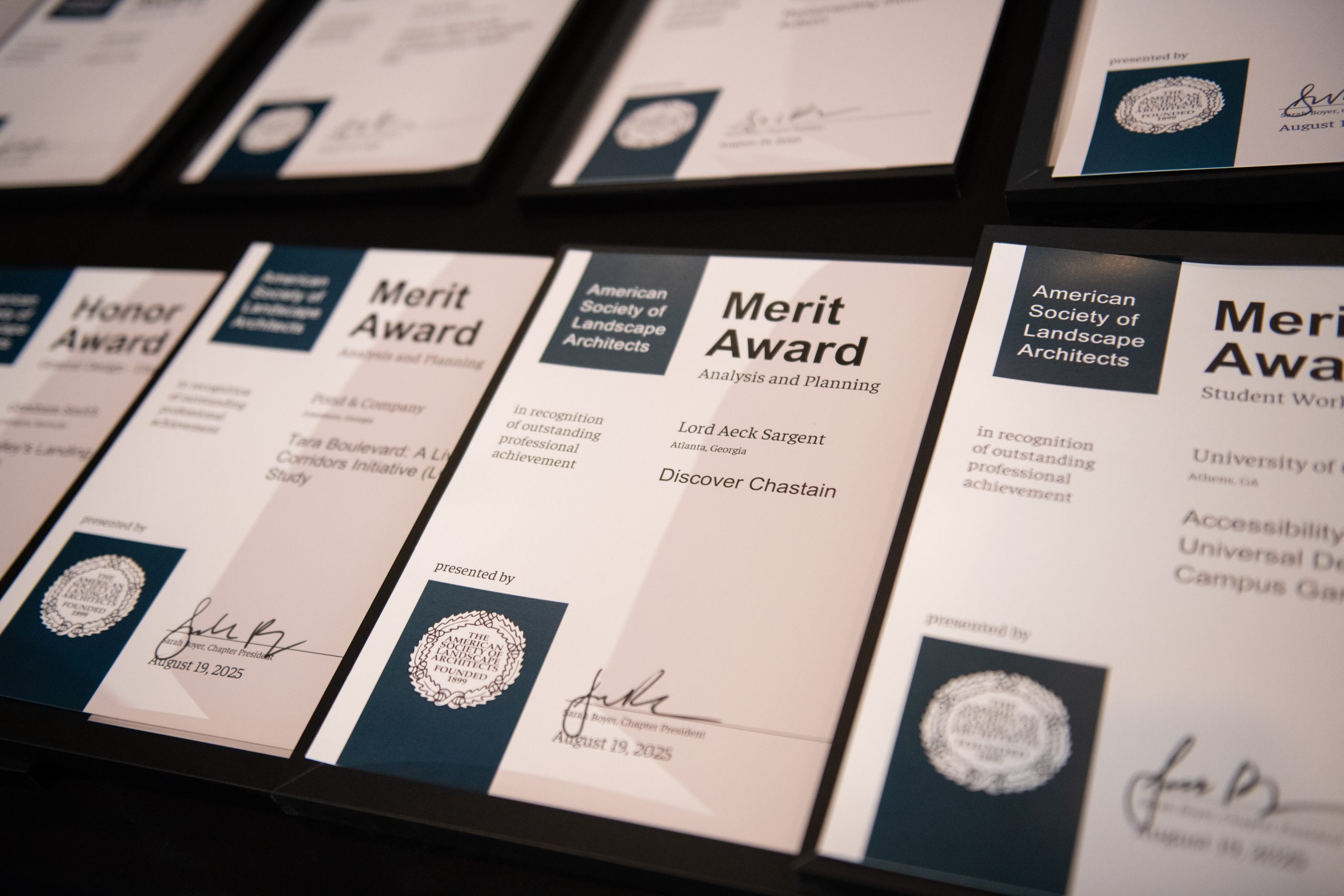 The awards are the highest level of achievement in Georgia’s landscape architecture field. As the recipients took their plaques, announcer Inga Kennedy pointed to the importance of the moment.
