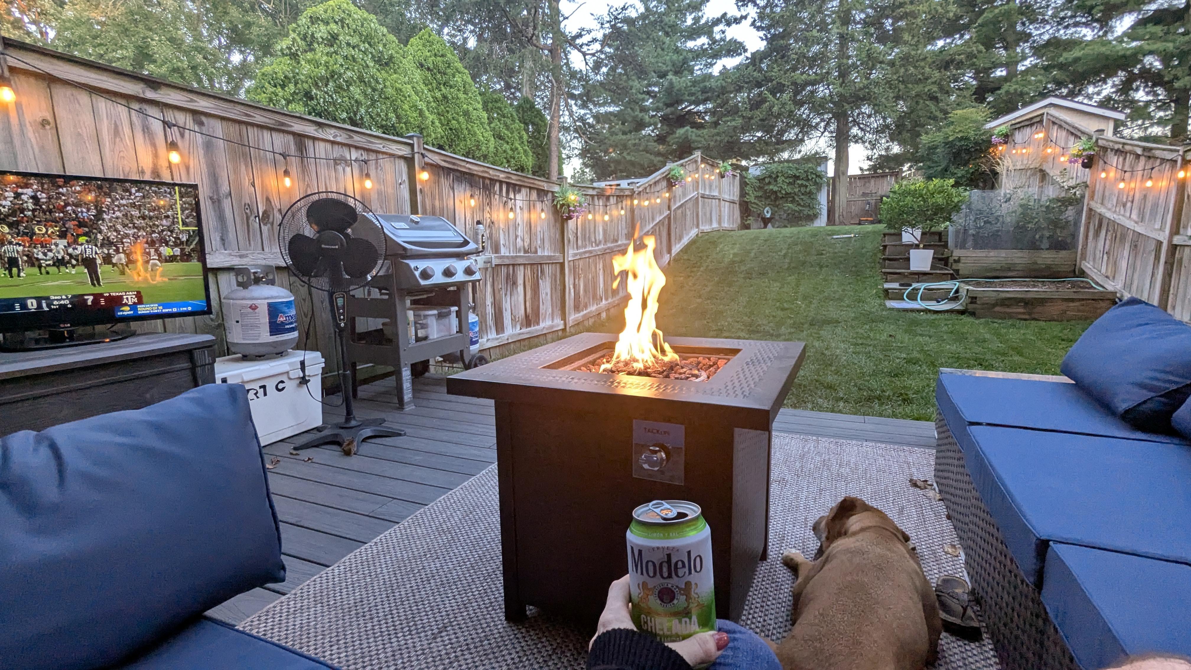 3. Holy cow what a perfect picture! Beer, football, grill, fire, dog and beautiful back yard to go with it. Hell yeah, cheers 🍻