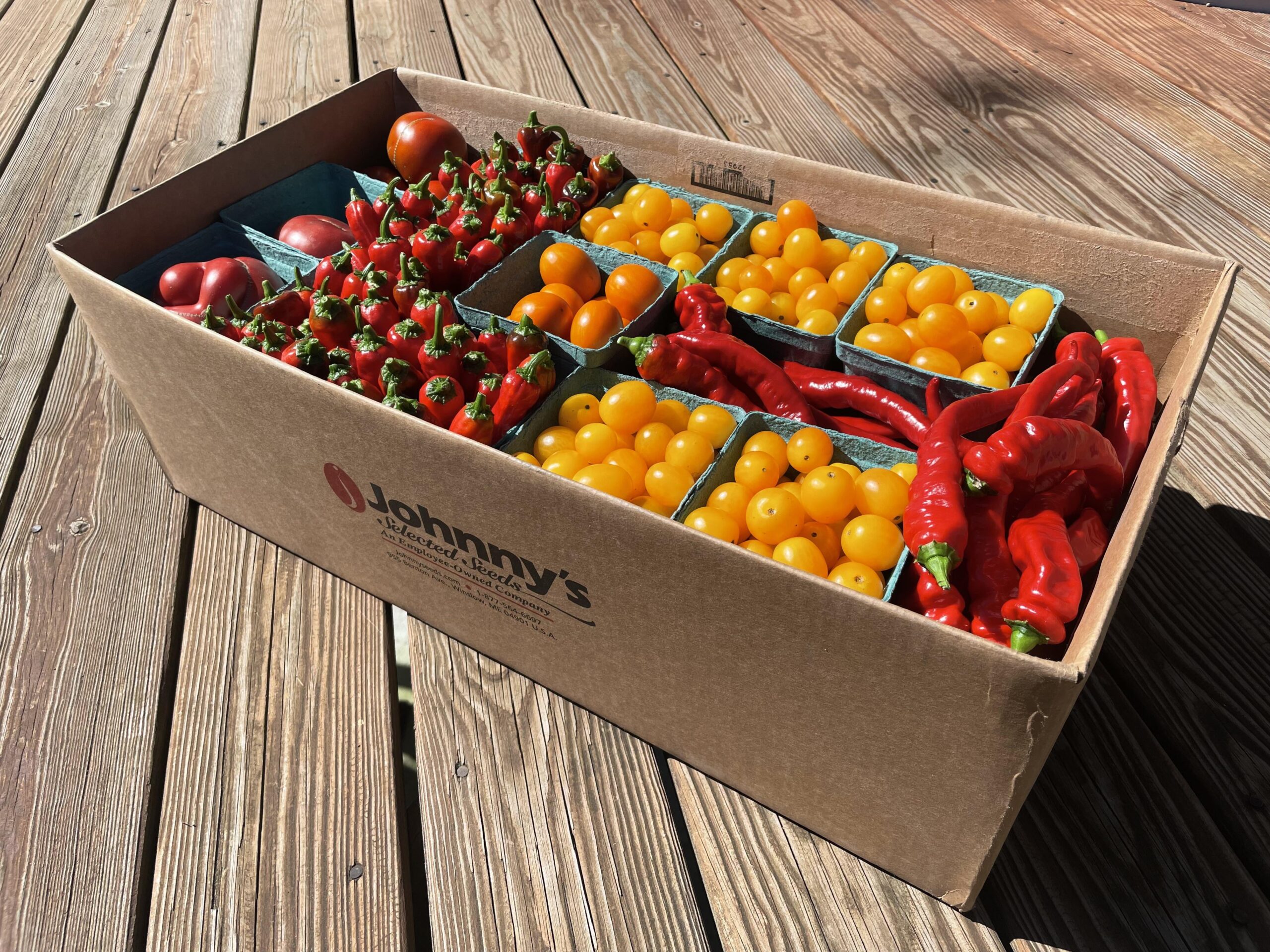 I had a great and joyful harvest this weekend, then packed it up in this old Johnny’s box and thought it was worth snapping a picture before I ate it all!