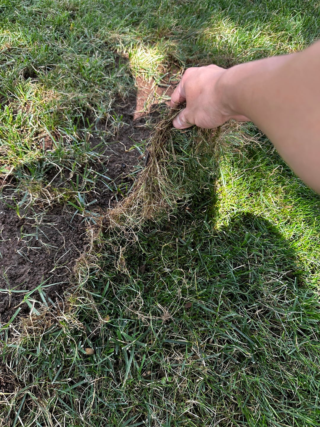 Check for grubs under the pulled sheet of grass