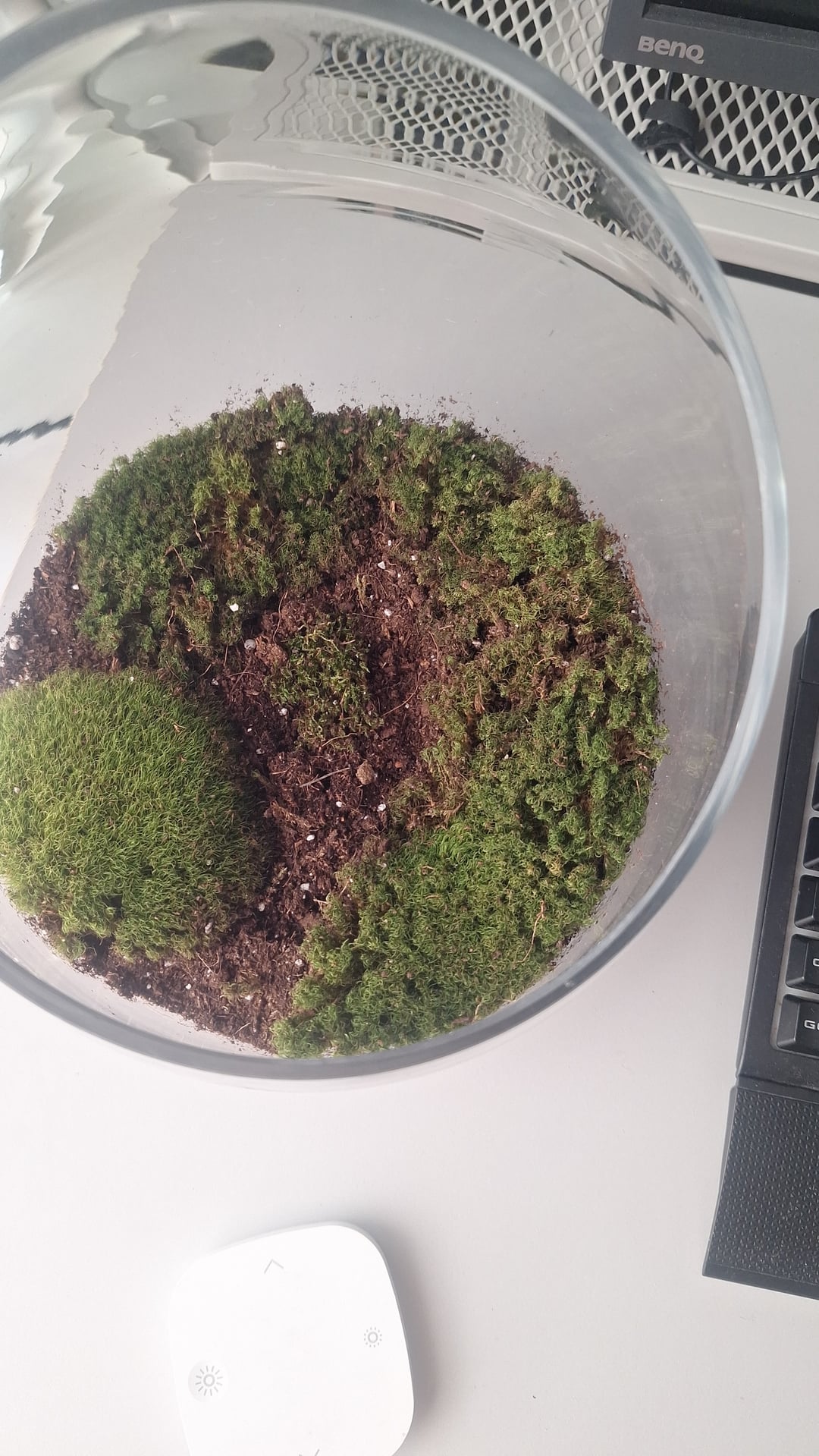 This is the first mossarium I have ever built and I need some advice, firstly, due to it's open top nature, how often should I water, one source said every three days, another said 1-2 weeks, so i am quite confused. Have been going with light watering every three days. The second question in just if the mossarium looks like it was built well, and if i should make any meaningfull changes to ensure the survival of my moss. The moss types are mood and pillow moss