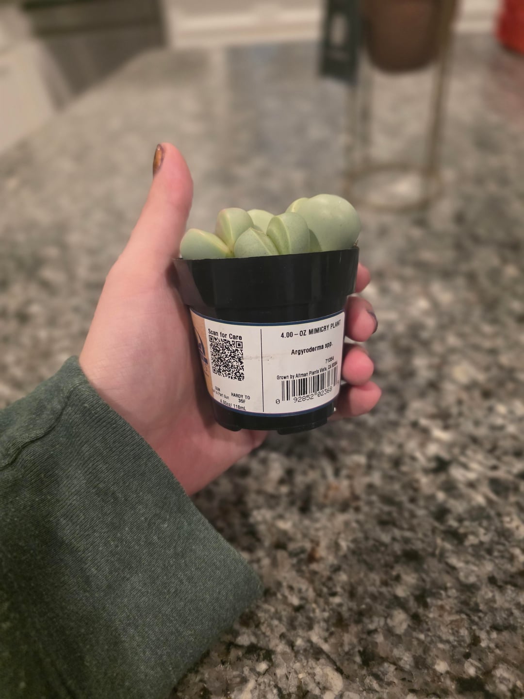 StaticBrick 2 months ago It seems to bean Argyroderma species from the label. Split rocks (Pleiospilos nelii) are a bit more spotty (see photo). https://preview.redd.it/3zv43aq9etmf1.png?width=1080&format=png&auto=webp&s=7bb3d6a2346761c409906ea4cdbe8976978a63ba