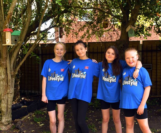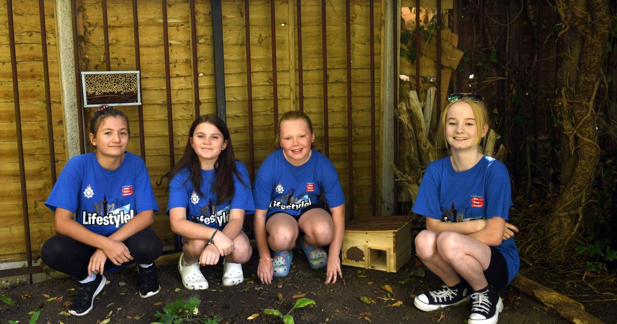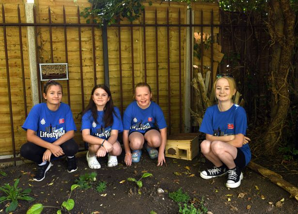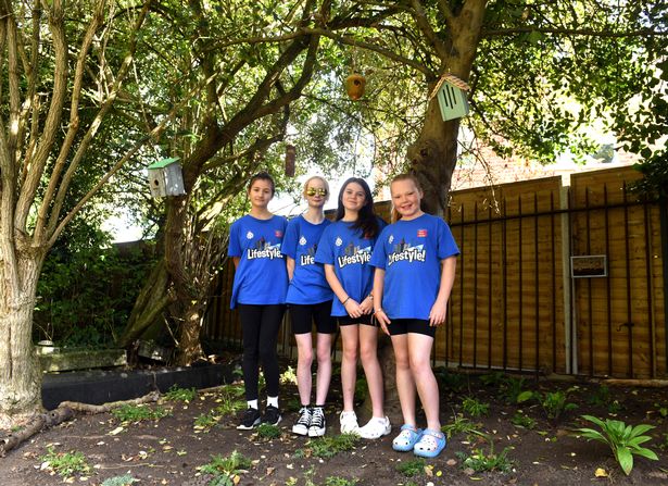 from left, Laura Kulesza, 11, Holly Wraith, 11, Eleanor Williams, 11 and Lilly Booth, 11, in the Wildlife Garden