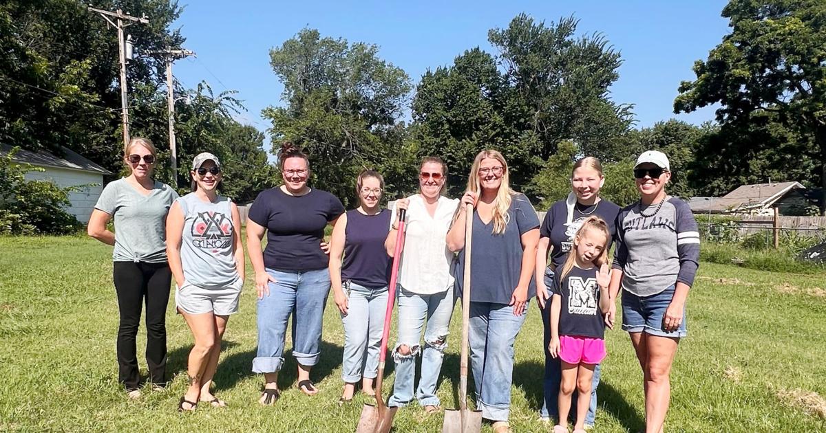 Committee members with Outlaw Harvest Collective, a community garden group, put shovels in the dirt Aug. 29 to begin phase one of the engagement project.