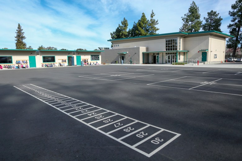Over summer break, Jose Antonio Vargas Elementary School underwent a transformation, with the addition of trees, plants, outdoor seating areas and painted asphalt. Photo by Zoe Morgan.