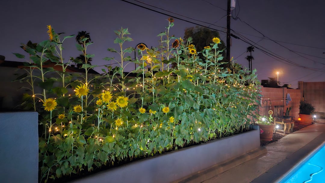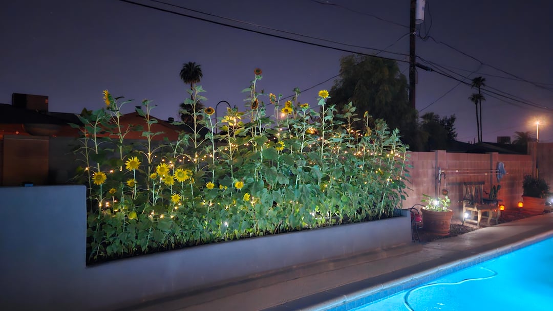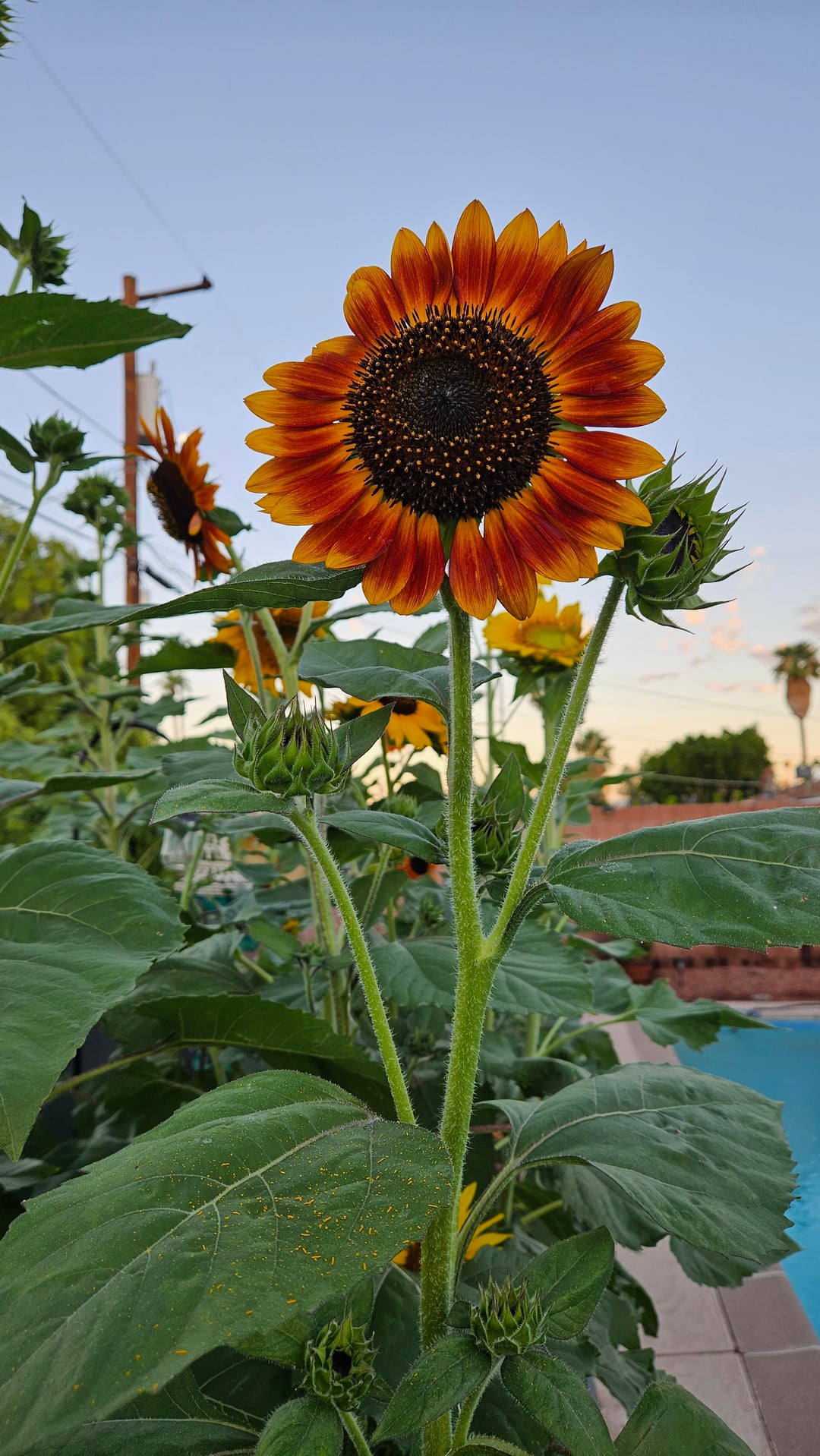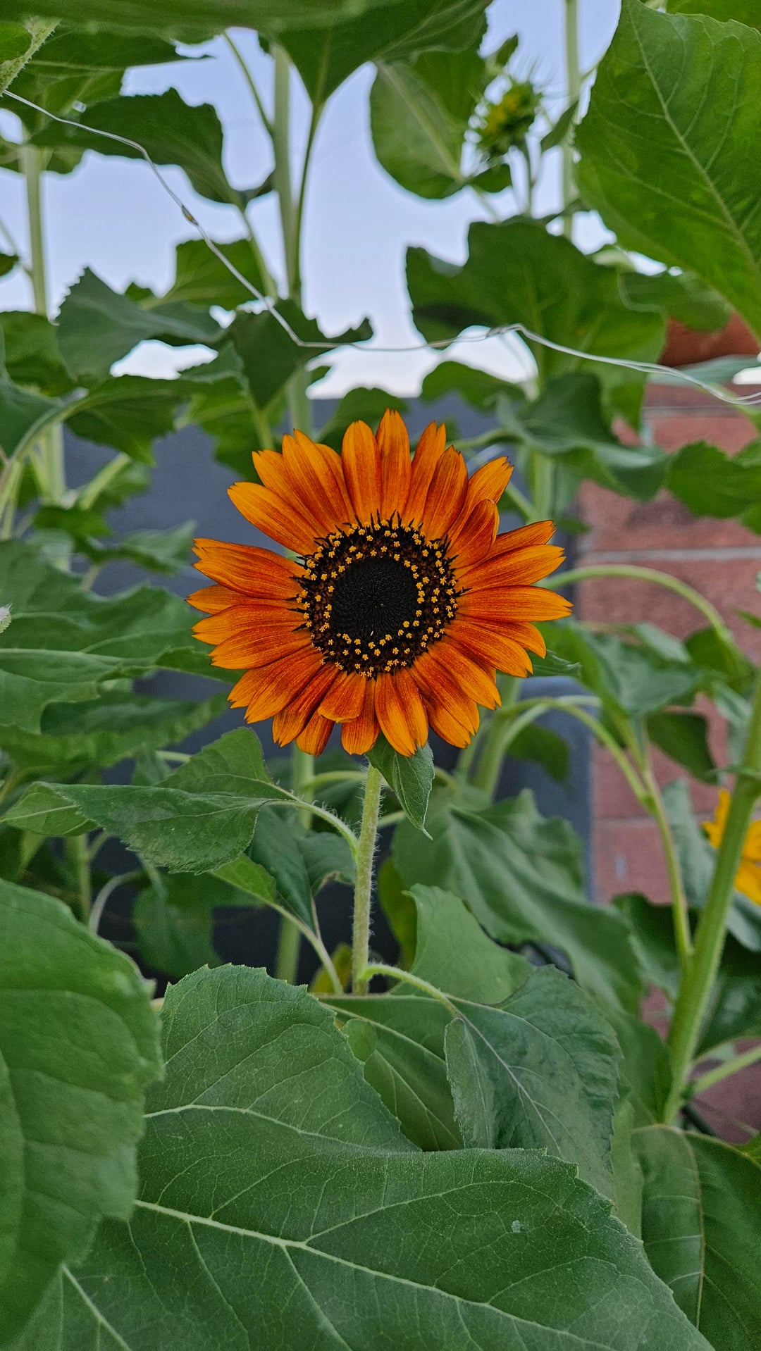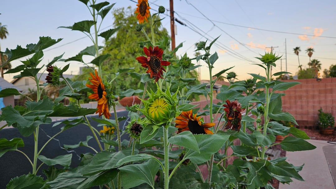 Planted July 18 and was worried that the brutal heat was gonna do damage. These were supposed to be all mammoths from home depot seeds but some are shorties. I think the heat stunted them but I absolutely love them! I dont have to drag the ladder around to get pics! LOL