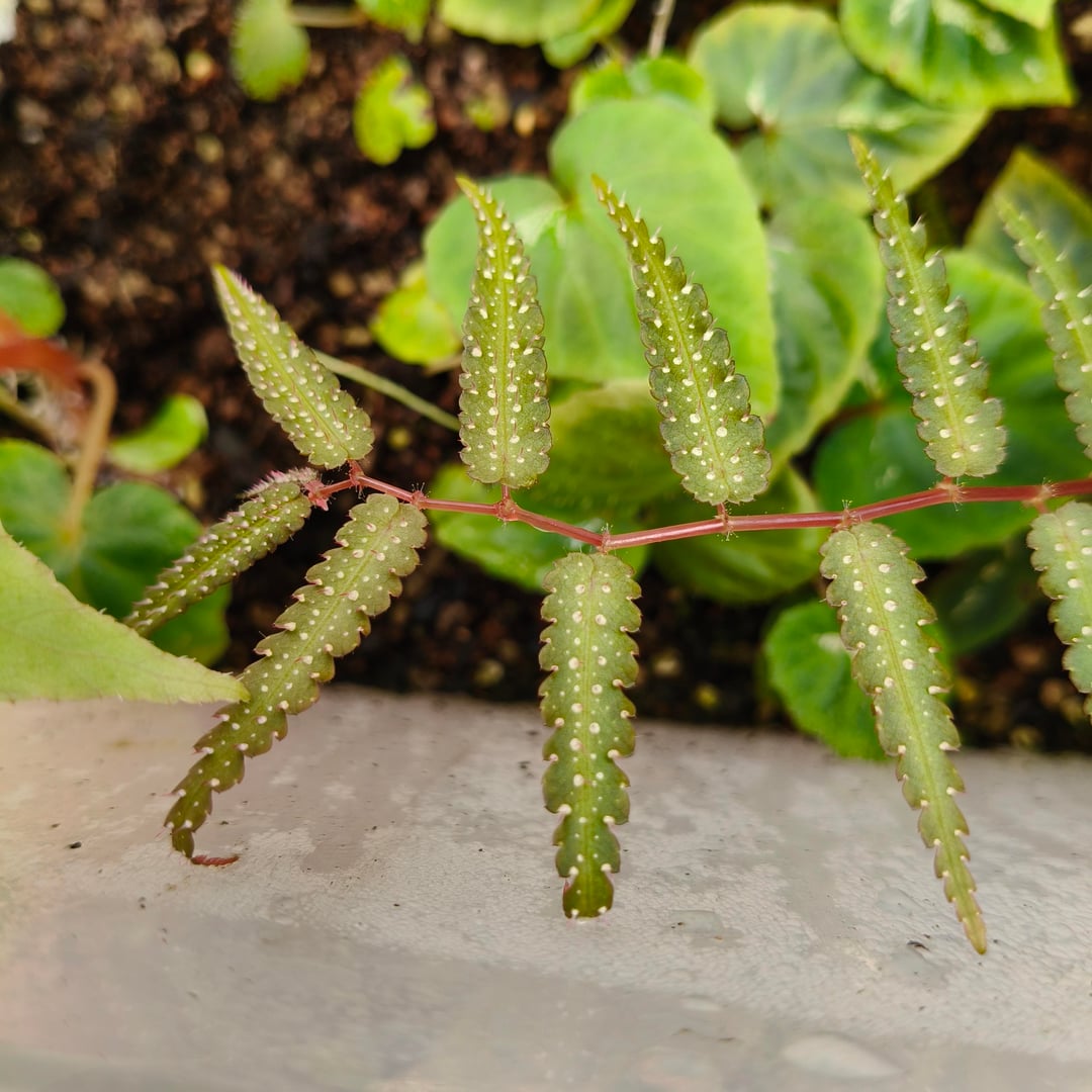 Last year, I crossed my white-spotted Begonia pteridiformis with a pink-spotted one. The seeds took about 6 months to germinate, most likely waiting for the rainy season to return.