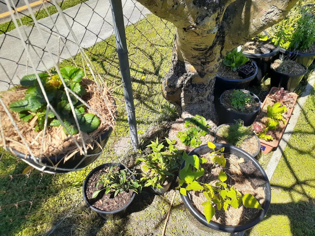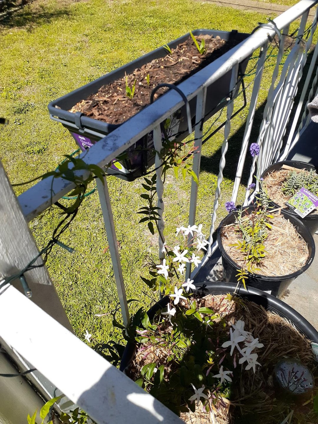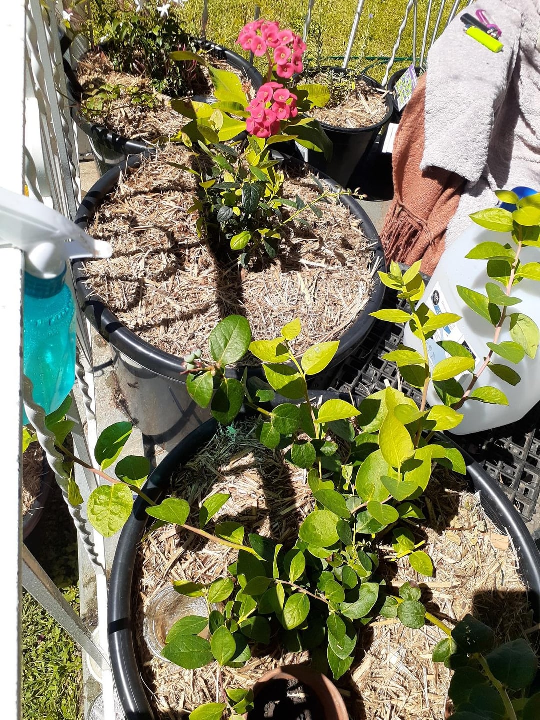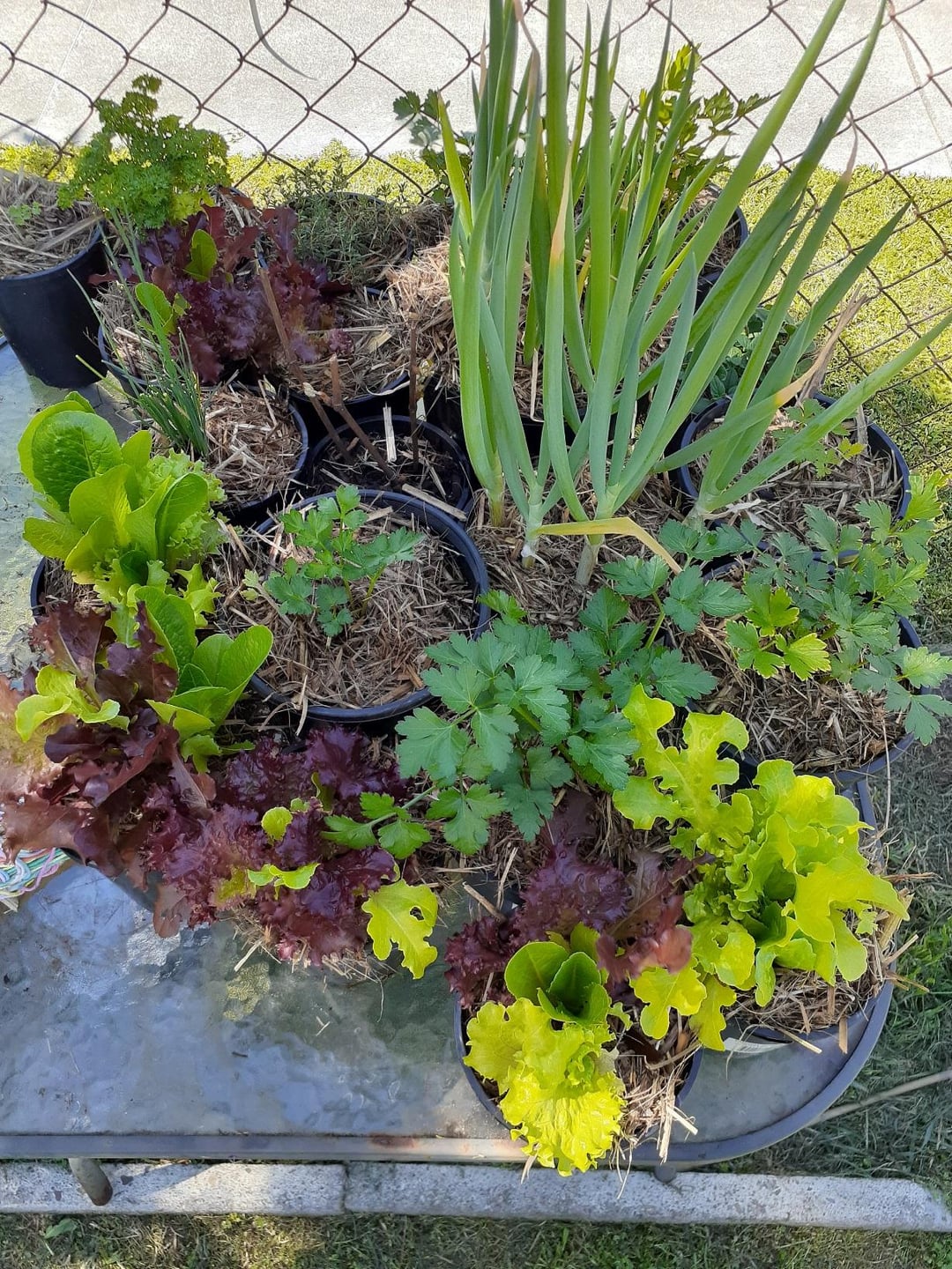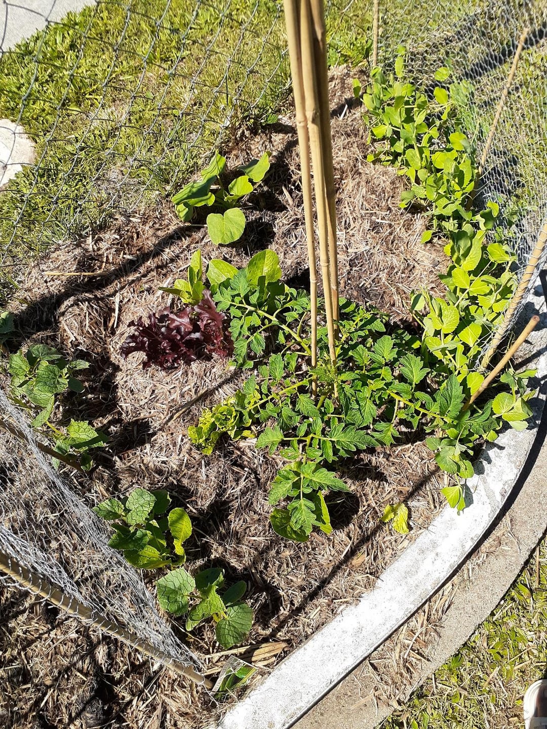I have tomatoes, beans, lettuce, the last of the snow peas, cucumber, spring onion, strawberries, blueberries, lavender, passionfruit, coriander, parsley, oregano, thyme, carrots, nasturtium all chugging along nicely. I have more beans, button squash, cherry and heirloom tomatoes and watermelon in the seedling trays.