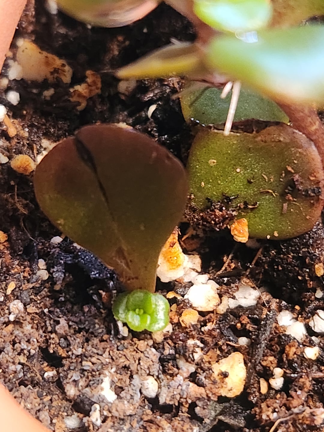 And the (I think) sedum that I found a ton of at Home Depot on the outdoor floor, a leaf has sprouted and we've got new growth all over!