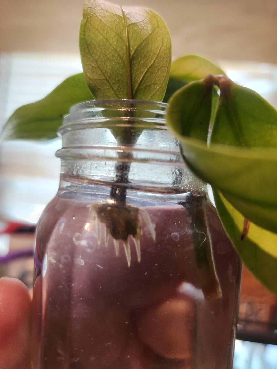 Sad dried ZZ bits found on the floor at Walmart showing some roots! They looked so bad, I didn't have a lot of hope, so this makes me happy.