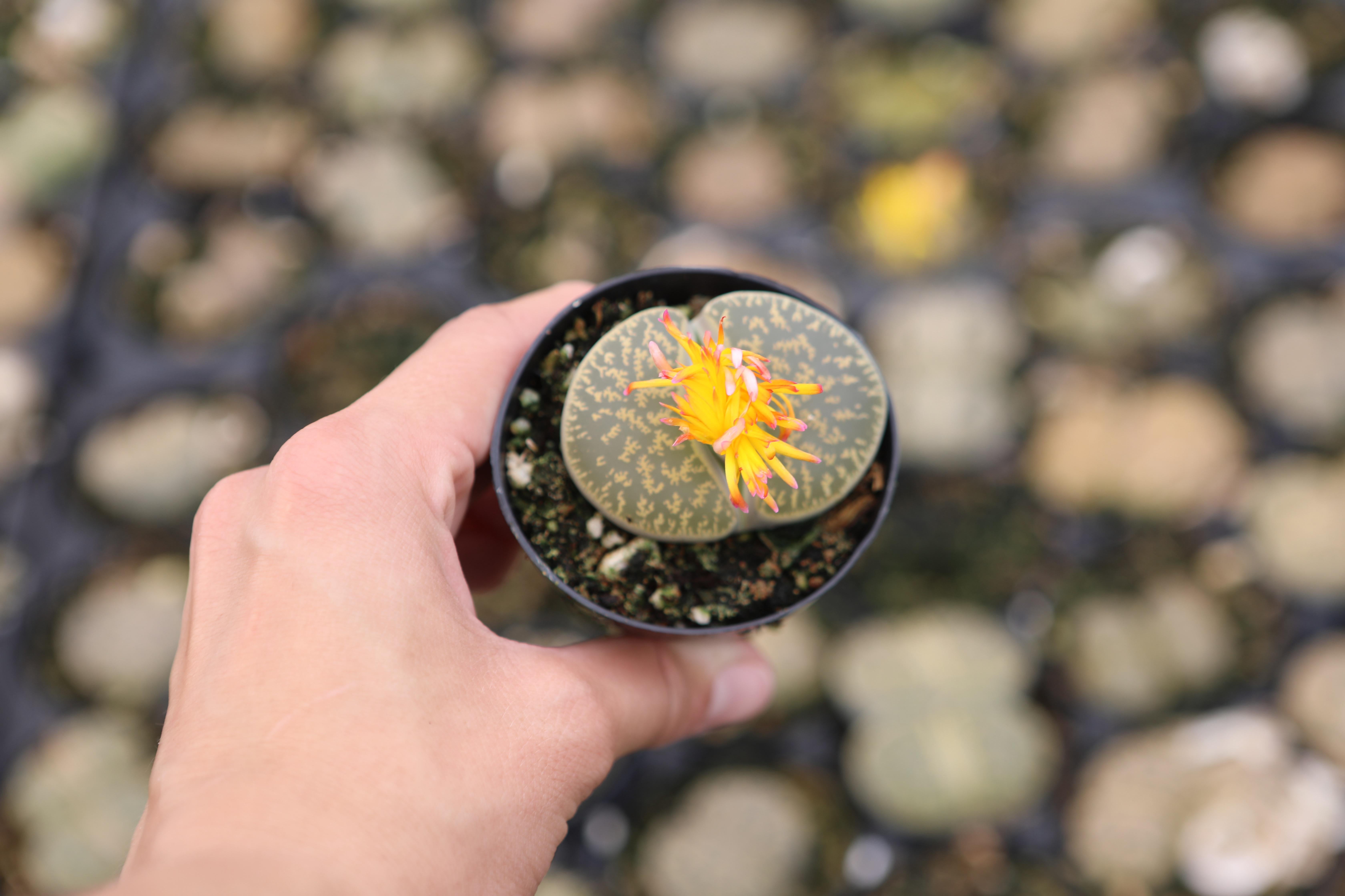 The yellow orange flower is throwing me off hmm by RoscoesWorkshop lithops 1 Comment EeEmCeTo 2 months ago Lithops naureeniae, possibly