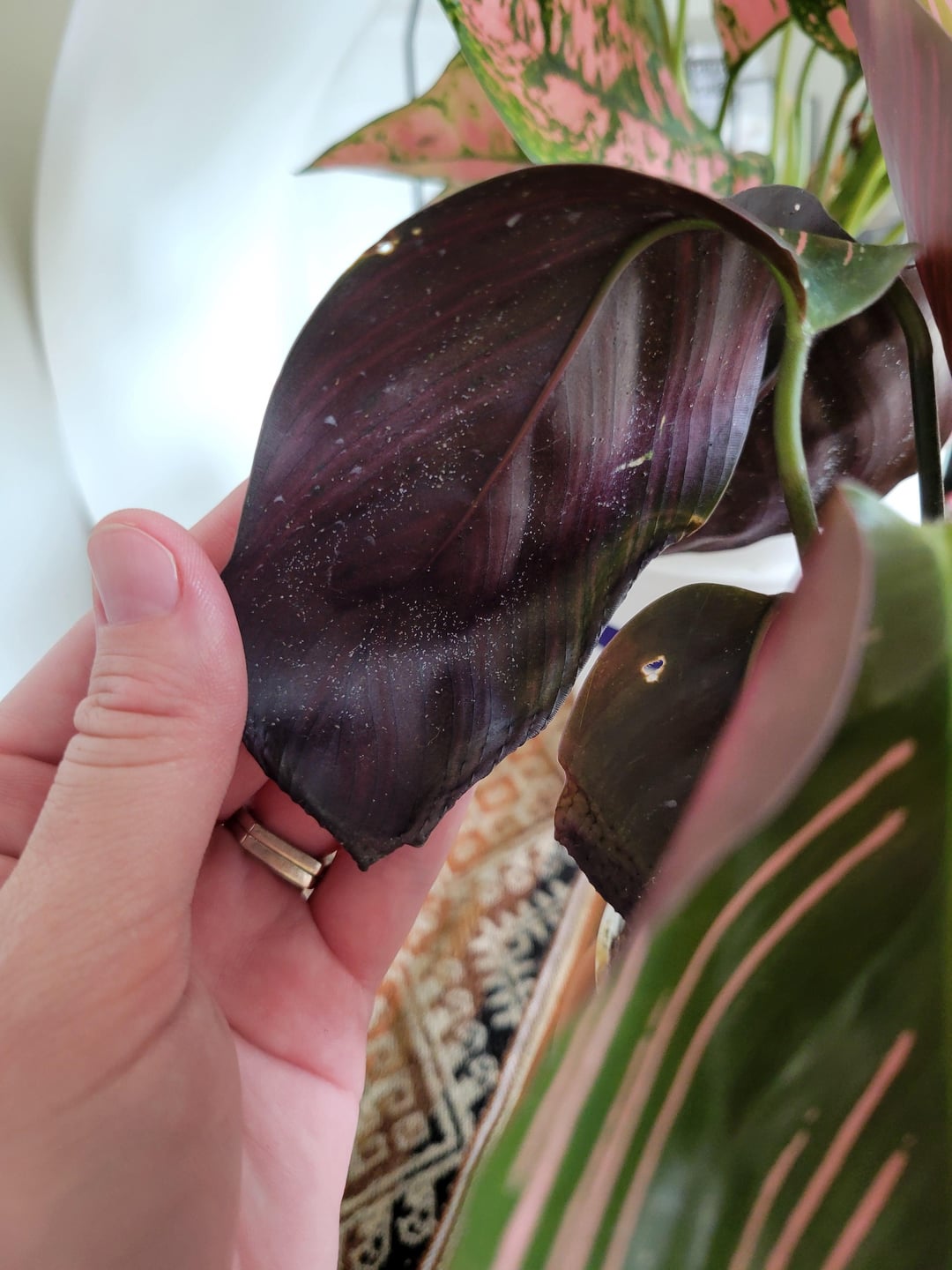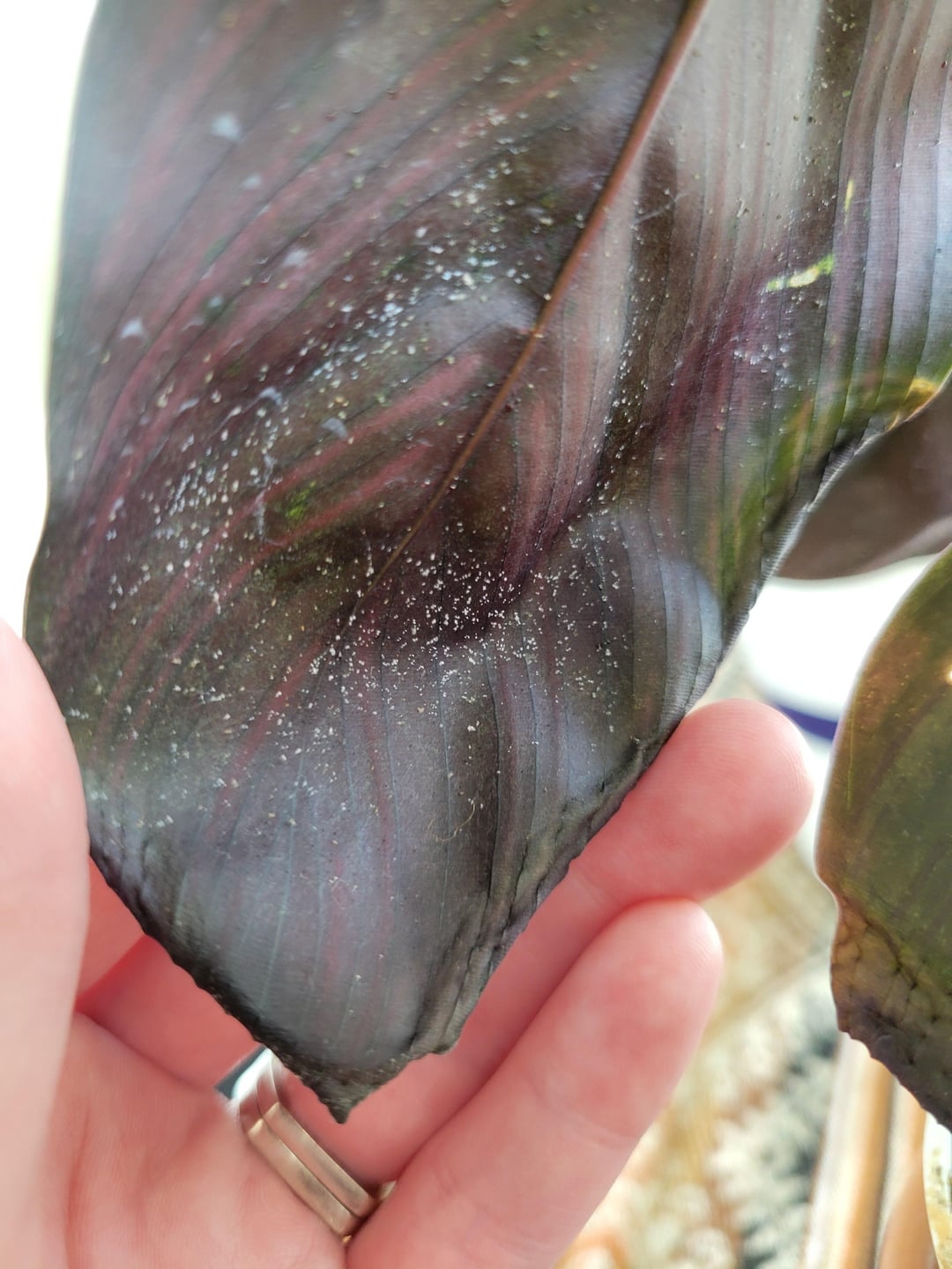 I start by rinsing the plant down in the shower to physically remove the adult bugs, then I wipe the front and back of every leaf with a microfiber cloth soaked in diluted peppermint Castile soap (Dr. Bronnerās is my go-to but any Castile soap should work). This ensures all adults are gone, which stops reproduction, and the soap will also make it harder for the eggs to hatch and grow.